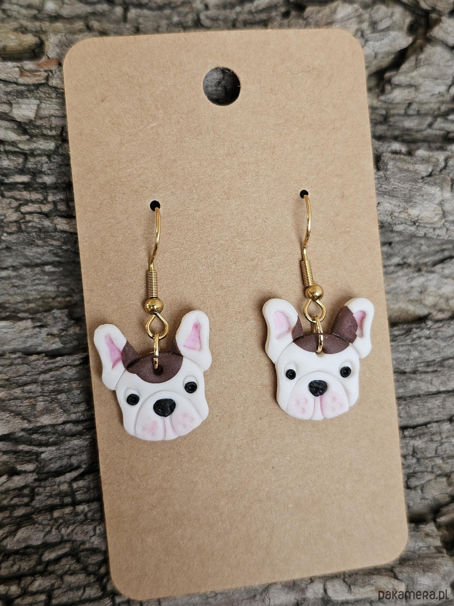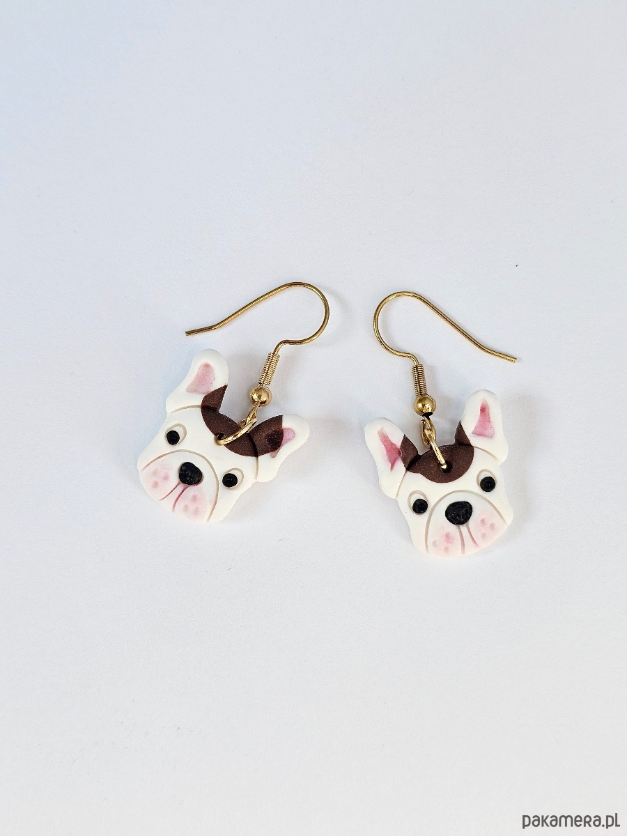 Kolczyki pieski buldog francuski biały z brązową łatką
