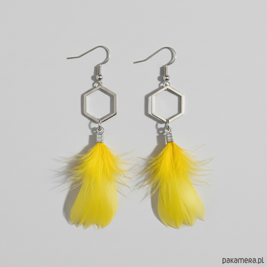 Kolczyki geometryczne z żółtymi piórkami