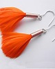 PIÓRKO - stylowy dodatek. Połączenie lekkości piórka i trwałości metalu. Metal niezwykle kontrastuje z naturalnym barwionym puchem. Kolczyki wykonane są z : miedź, naturalne barwione pióra. Miedź : zmatowiona. Bigle otwarte - srebro pr.925. Długość z biglami - 8 cm. Waga: ok. 3 g
