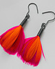 PIÓRKO - stylowy dodatek. Połączenie lekkości piórka i trwałości metalu. Metal niezwykle kontrastuje z naturalnym barwionym puchem. Kolczyki wykonane są z mosiądzu, naturalnie barwione pióra. Mosiądz - oksydowan. Bigle otwarte - srebro pr.925,oksydowane. Długość z biglami - ok. 5,5 cm. Szerokość - 2 cm. Waga - ok. 2,3 g.