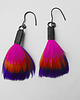 PIÓRKO - stylowy dodatek. Połączenie lekkości piórka i trwałości metalu. Metal niezwykle kontrastuje z naturalnym barwionym puchem. Kolczyki wykonane są z mosiądzu, naturalnie barwione pióra. Mosiądz - oksydowany. Bigle otwarte - srebro pr.925,oksydowane. Długość z biglami - 7,5 cm. Szerokość - 3 cm.