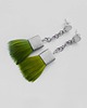 PIÓRKO - stylowy dodatek. Połączenie lekkości piórka i trwałości metalu. Metal niezwykle kontrastuje z naturalnym barwionym puchem. Kolczyki wykonane są z alpaka, naturalnie barwione pióra. Alpaka - zmatowiona. Bigle otwarte - srebro pr.925. Długość z biglami - 6,5 cm. Szerokość - ok. 2 cm.