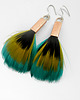 PIÓRKO - stylowy dodatek. Połączenie lekkości piórka i trwałości metalu. Metal niezwykle kontrastuje z naturalnym barwionym puchem. Kolczyki wykonane są z miedzi, naturalnie barwione pióra. Miedź - zmatowiony. Bigle otwarte - srebro pr.925. Długość z biglami - 7,5 cm. Szerokość - 3 cm. Waga - ok. 2,5 g.