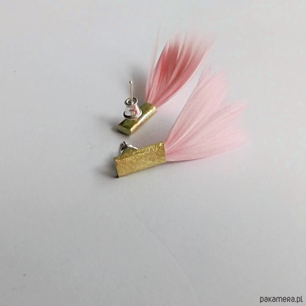 PIÓRKO - stylowy dodatek. Połączenie lekkości piórka i trwałości metalu. Metal niezwykle kontrastuje z naturalnym barwionym puchem.Kolczyki na sztyftach. Kolczyki wykonane są z :mosiądz,srebro- próby 0,925, naturalnie barwione pióra. Mosiądz - zmatowiony. Długość - ok. 3,5cm. Szerokość - 2 cm. Waga - ok. 2 g.