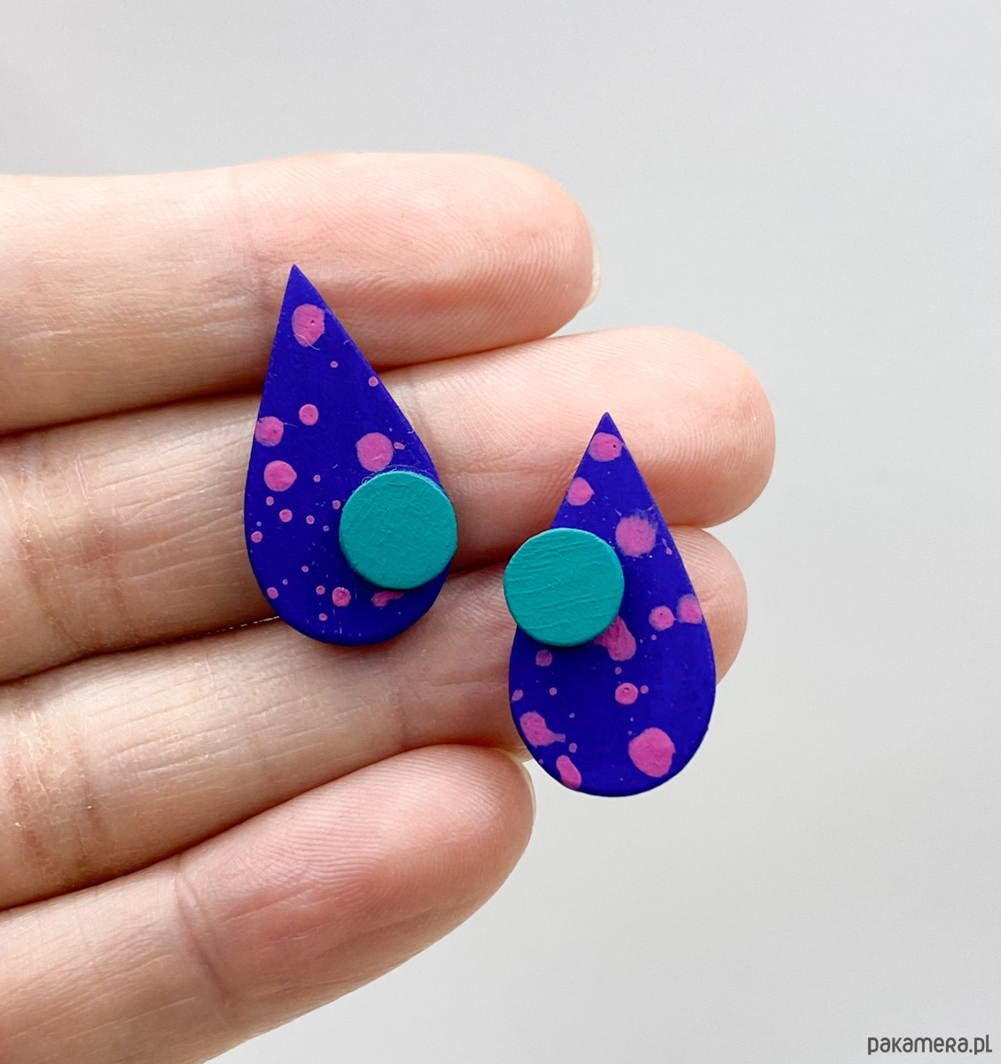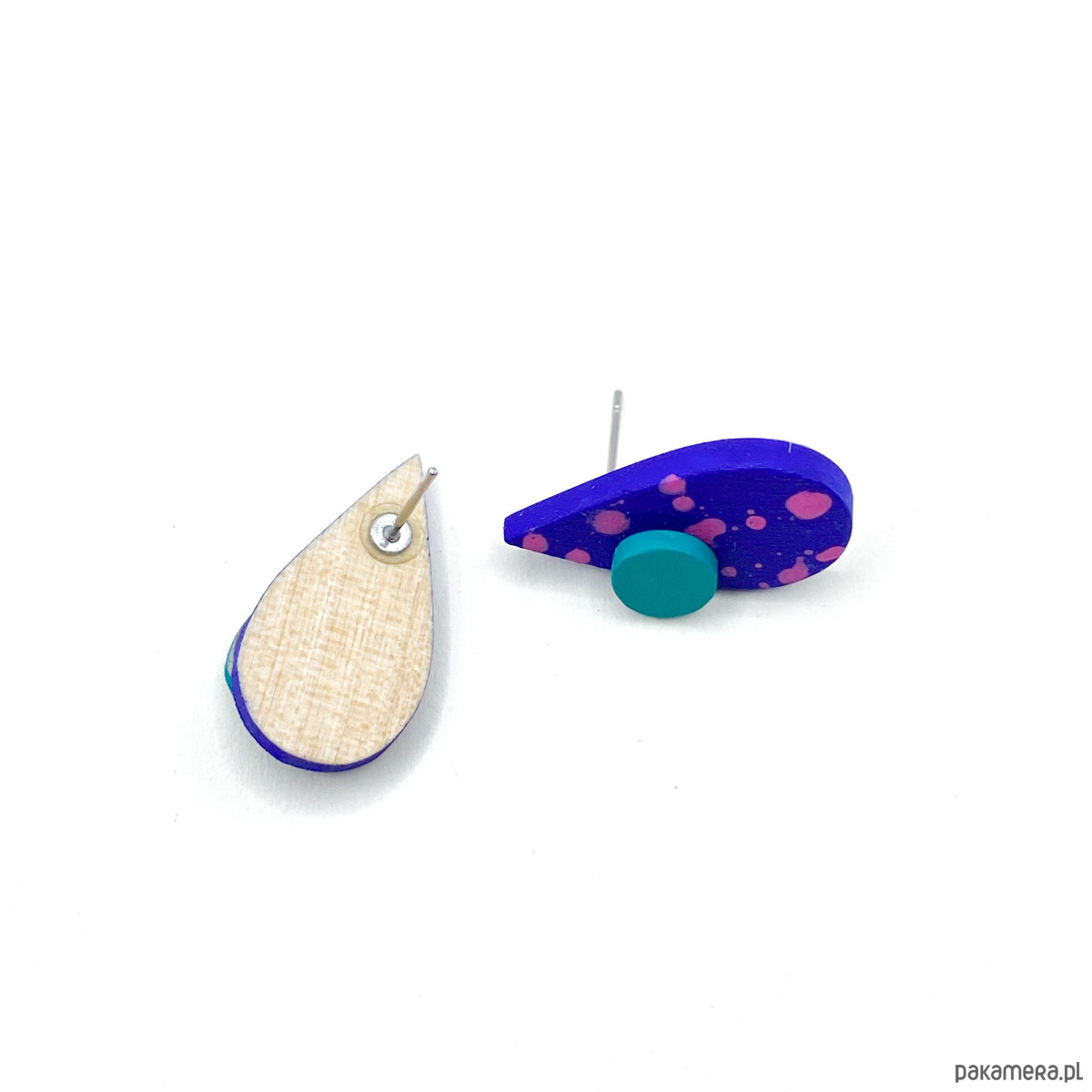 Kolczyki Plamki są bardzo lekkie i delikatne, zostały wykonane ręcznie z drewna brzozowego. Pokryte są farbą akrylową oraz bezbarwnym, matowym lakierem wodnym.