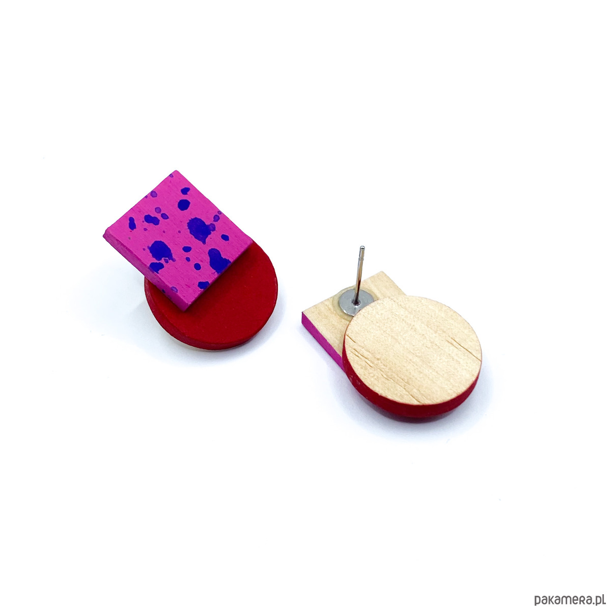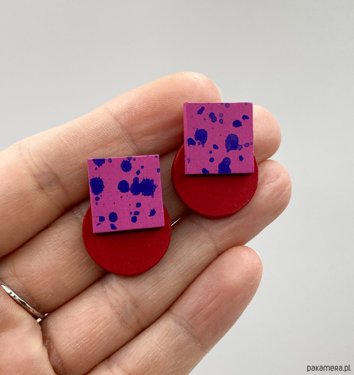 Kolczyki Plamki są bardzo lekkie i delikatne, zostały wykonane ręcznie z drewna brzozowego. Pokryte są farbą akrylową oraz bezbarwnym, matowym lakierem wodnym.