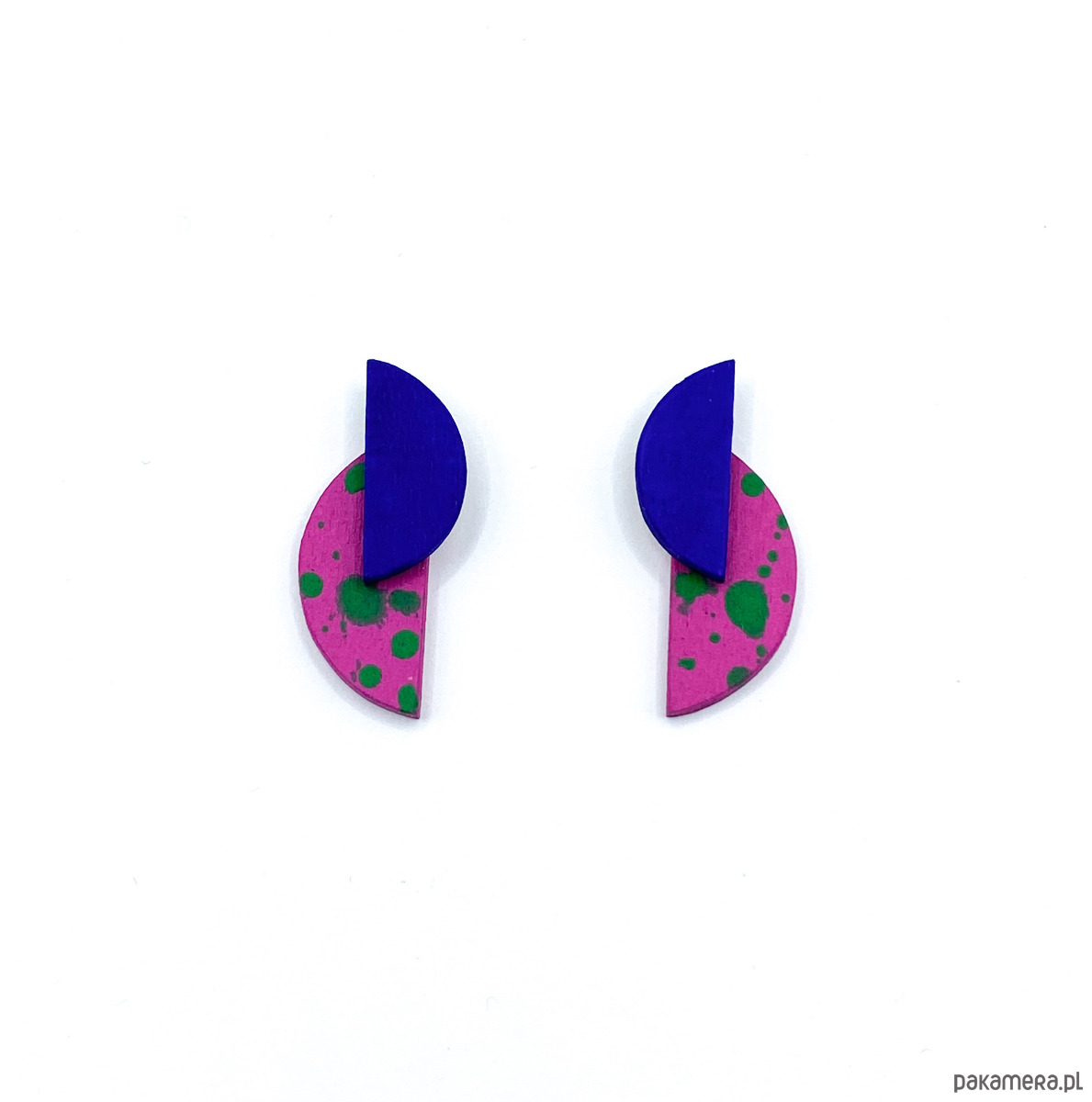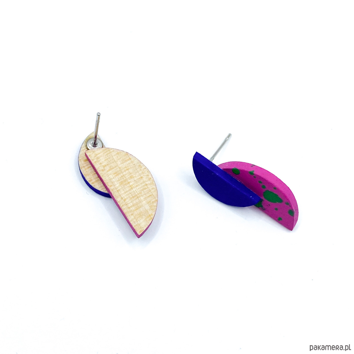 Kolczyki Plamki są bardzo lekkie i delikatne, zostały wykonane ręcznie z drewna brzozowego. Pokryte są farbą akrylową oraz bezbarwnym, matowym lakierem wodnym.