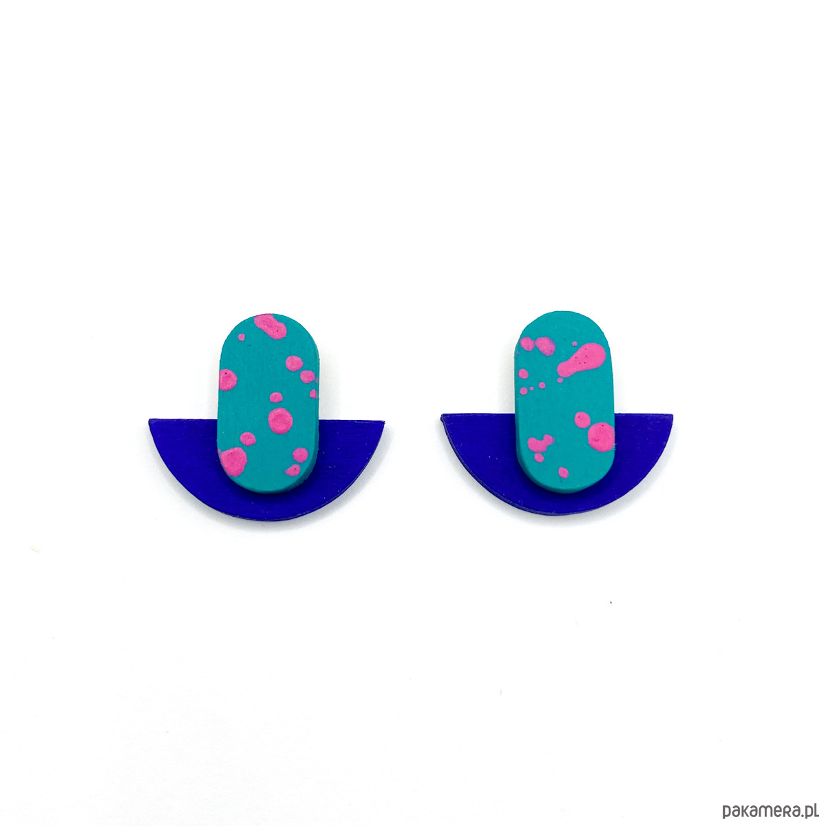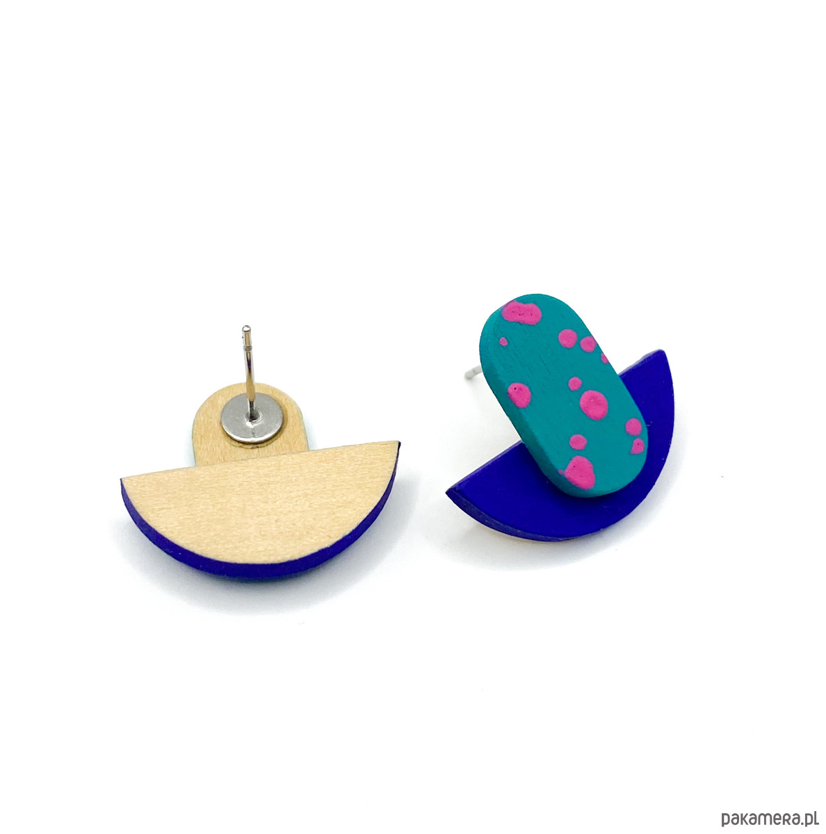 Kolczyki Plamki są bardzo lekkie i delikatne, zostały wykonane ręcznie z drewna brzozowego. Pokryte są farbą akrylową oraz bezbarwnym, matowym lakierem wodnym.