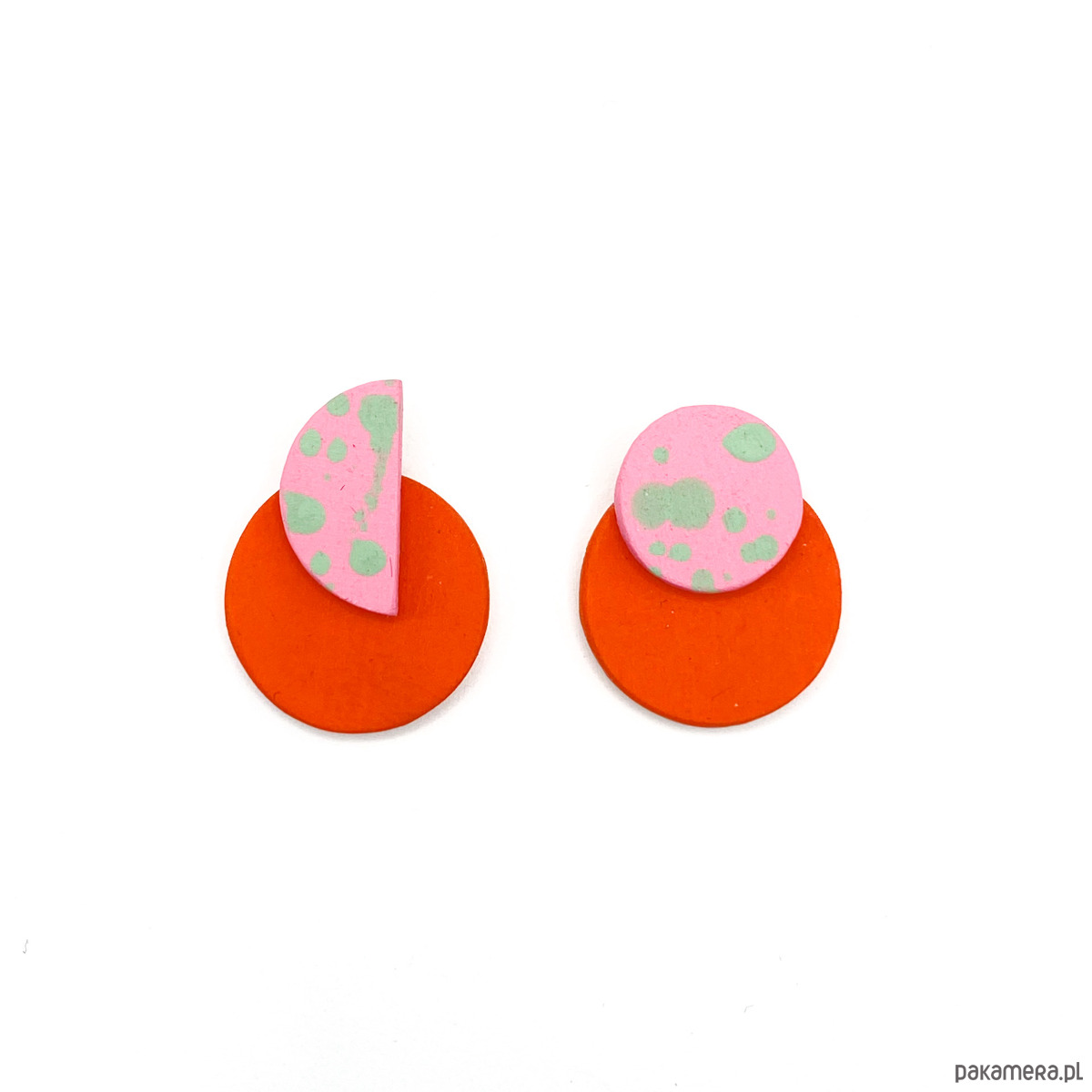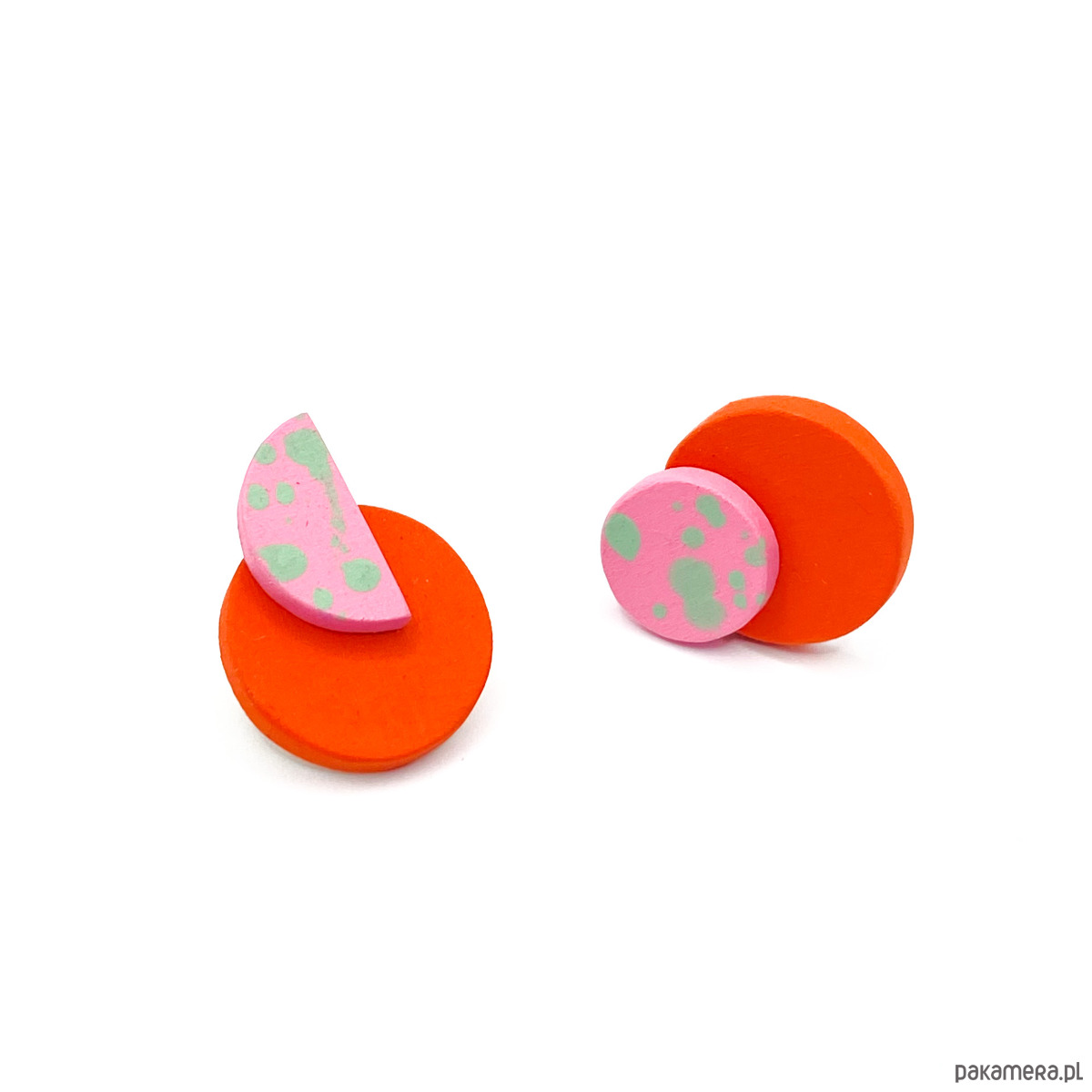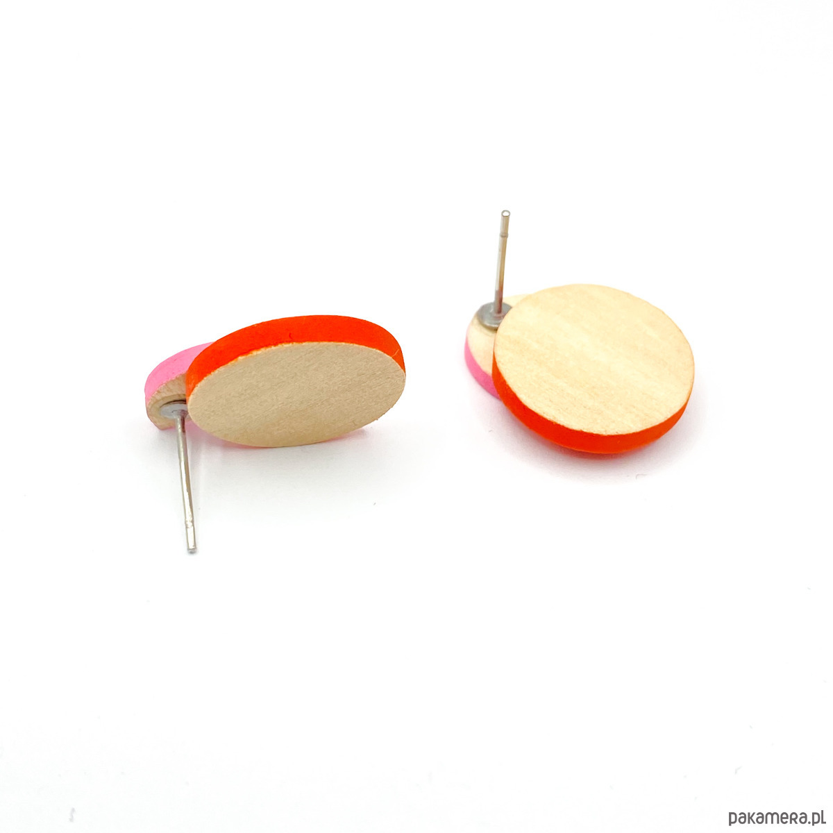 Kolczyki Plamki są bardzo lekkie i delikatne, zostały wykonane ręcznie z drewna brzozowego. Pokryte są farbą akrylową oraz bezbarwnym, matowym lakierem wodnym.