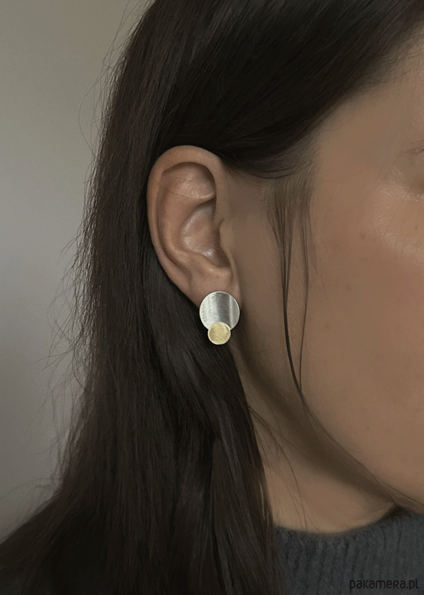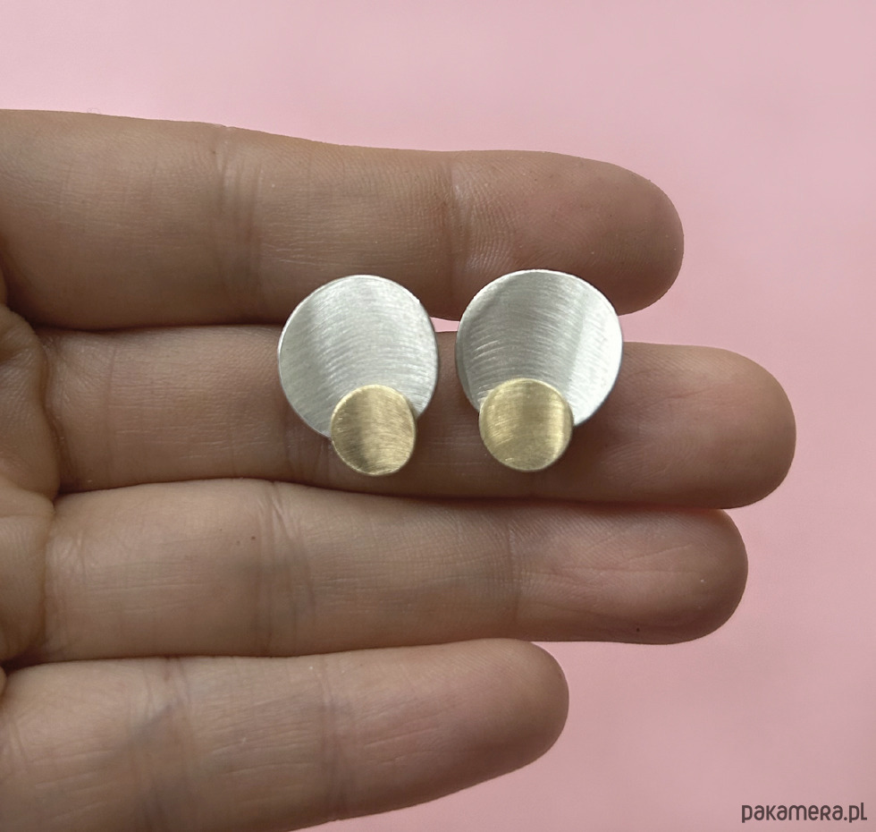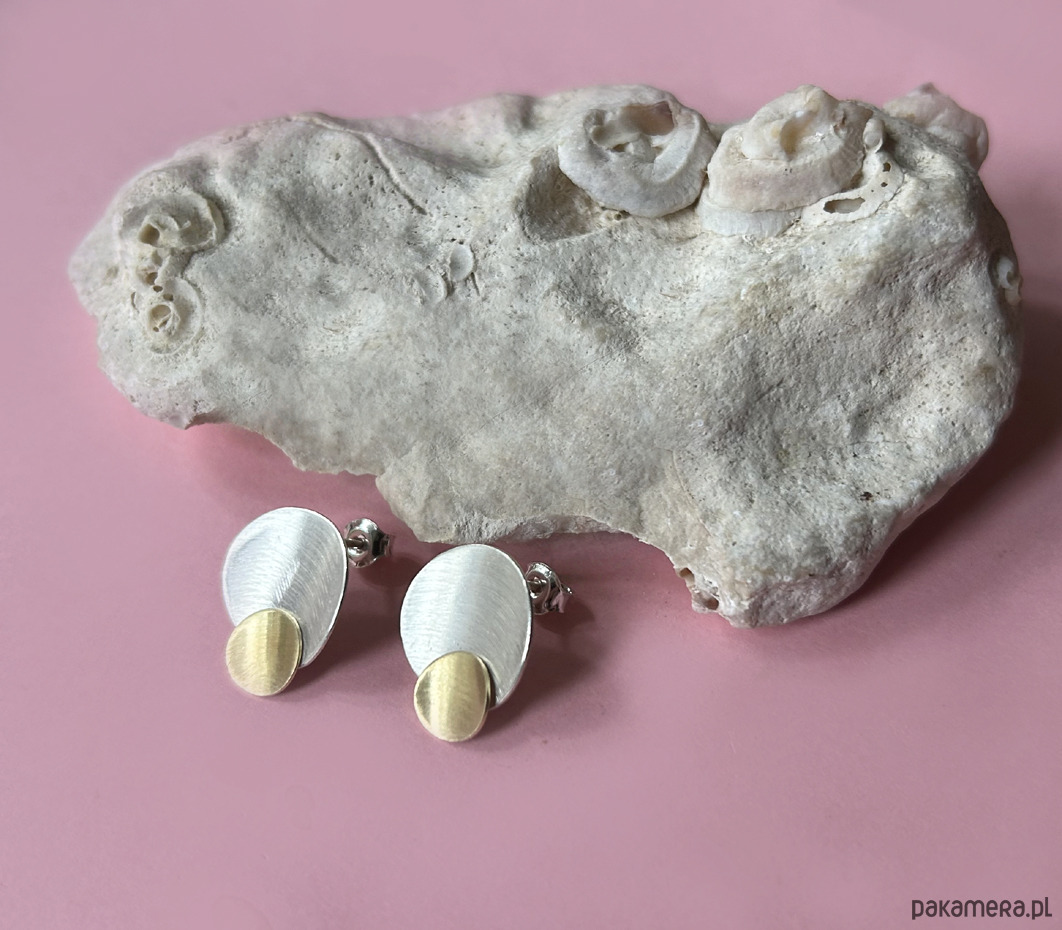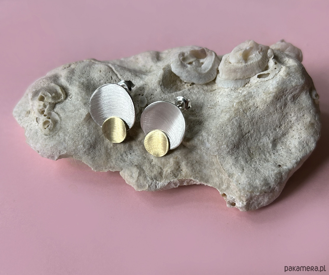 Efektowne kolczyki wykonane w całości ręcznie ze srebra pr. 925 i 24K złota