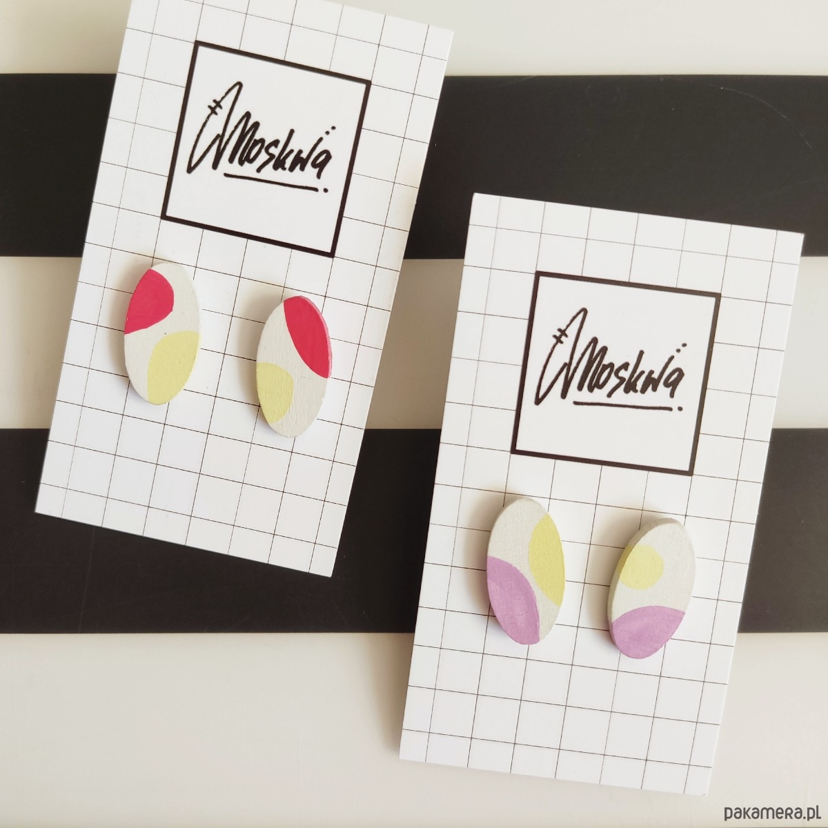 Małe, ręcznie malowane kolczyki. Wysokość ok. 2,3 cm. Sztyfty ze stali chirurgicznej.
