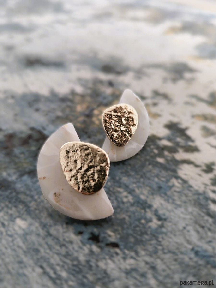 Kolczyki w stonowanej delikatnej jasne kolorystyce z połyskiem i ze złocistymi akcentami
