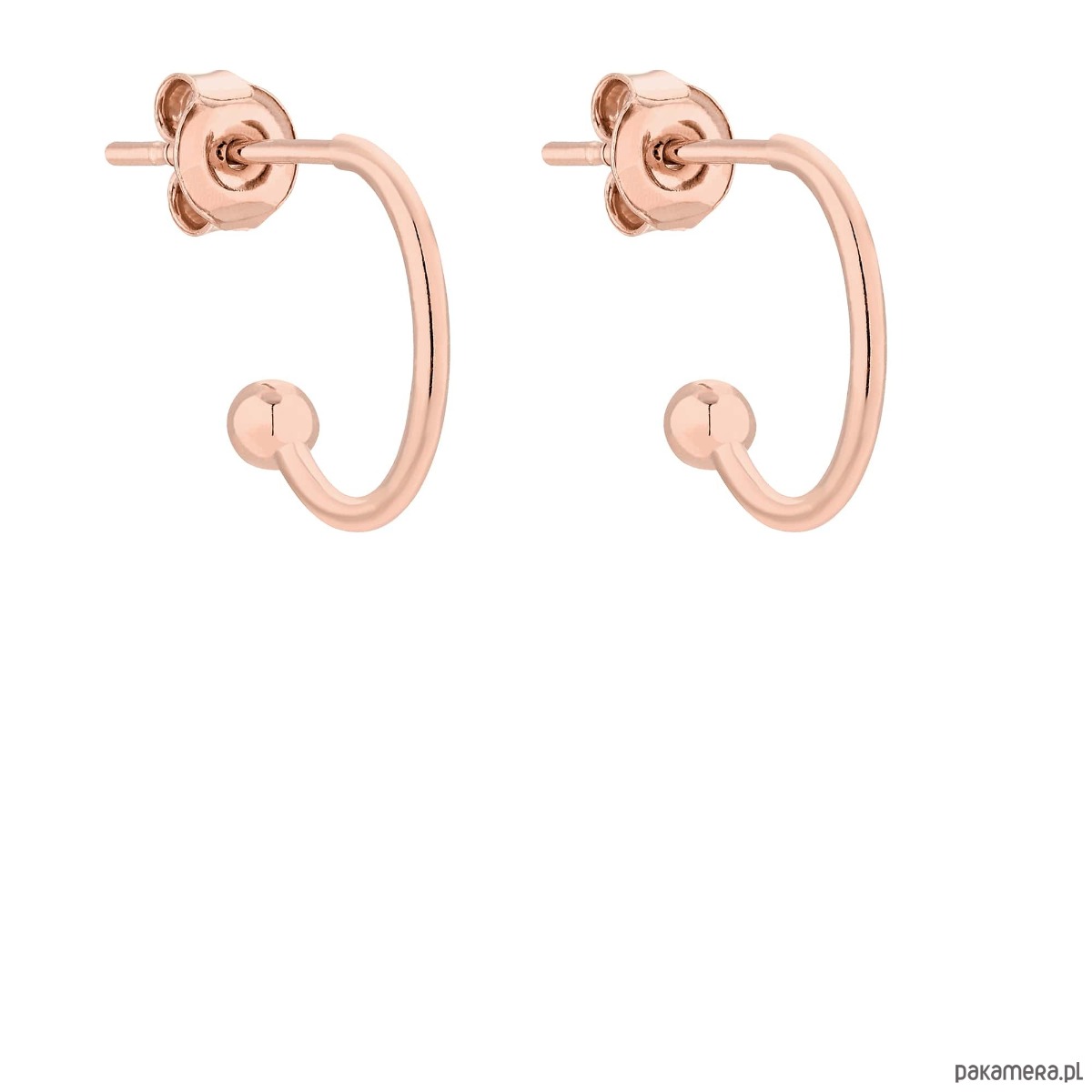Złote kolczyki półkola. Całość wykonana ze srebra 925 powlekanego 18 karatowym różowym złotem. Zapinane na sztyft. Kolczyki posiadają zapięcia (baranki).