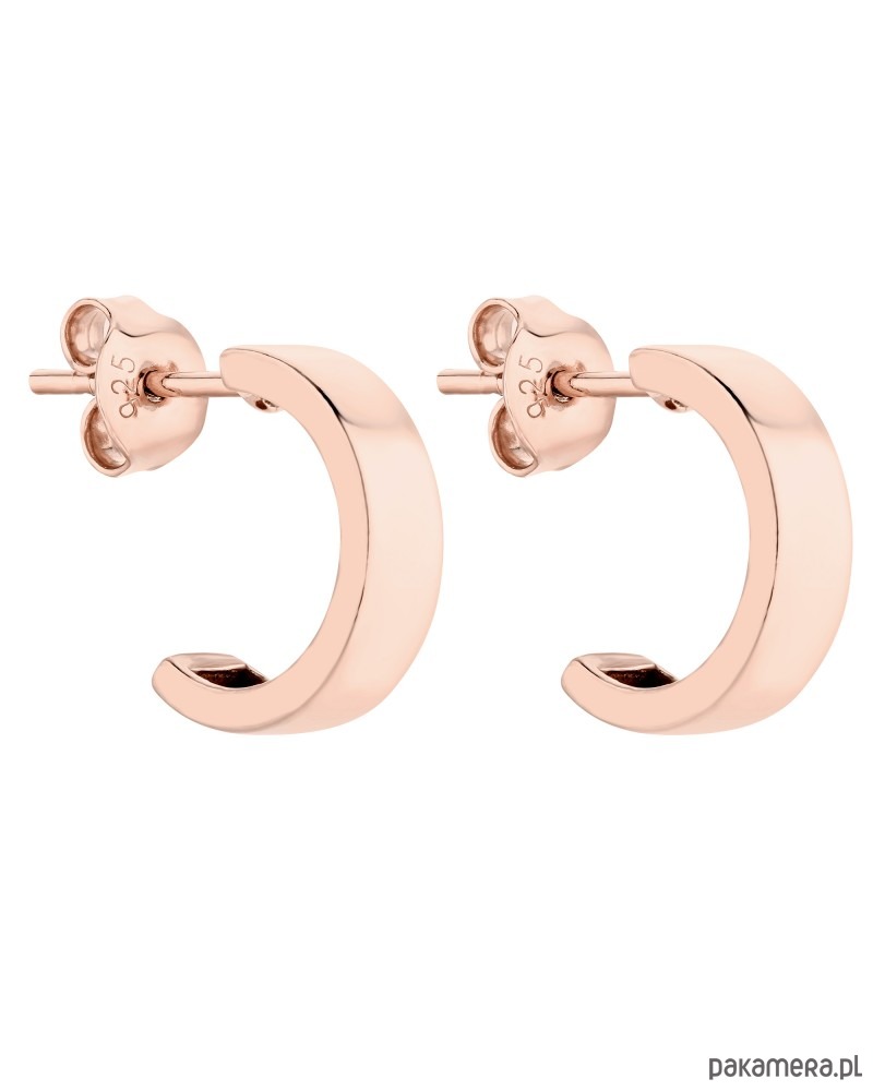 Złote kolczyki półkola. Całość wykonana ze srebra 925 powlekanego 24 karatowym różowym złotem. Zapinane na sztyft. Kolczyki posiadają zapięcia (baranki).