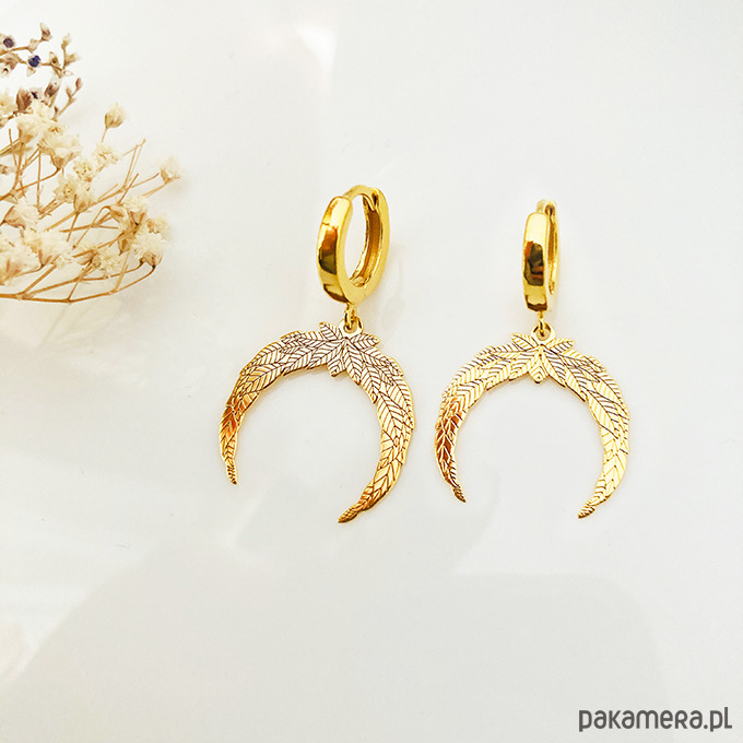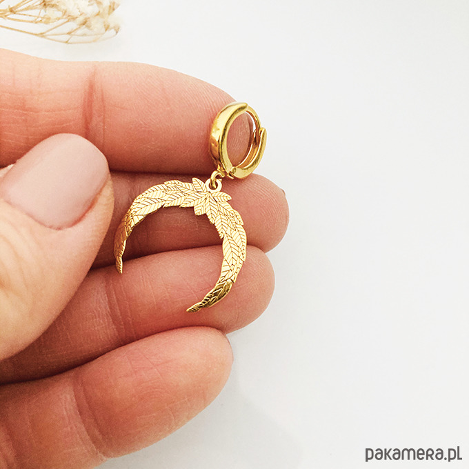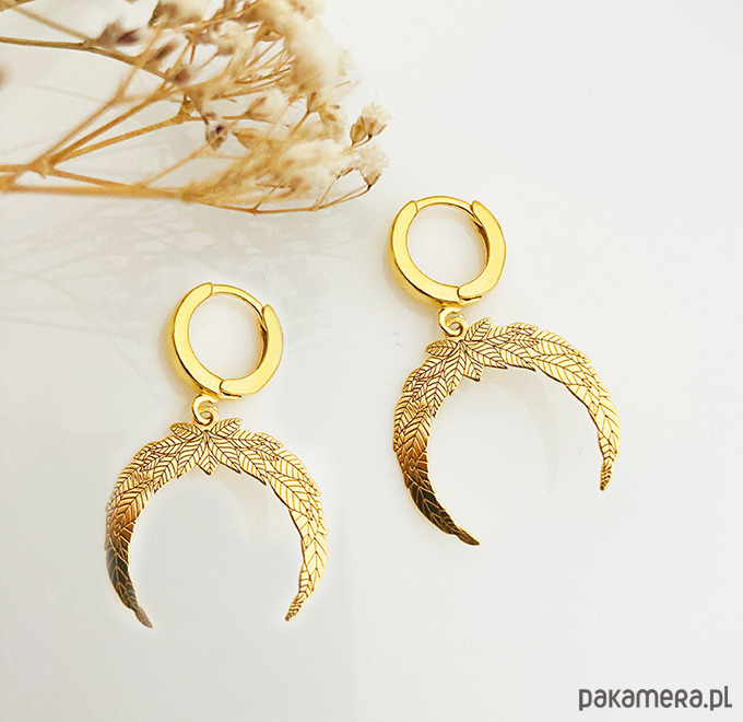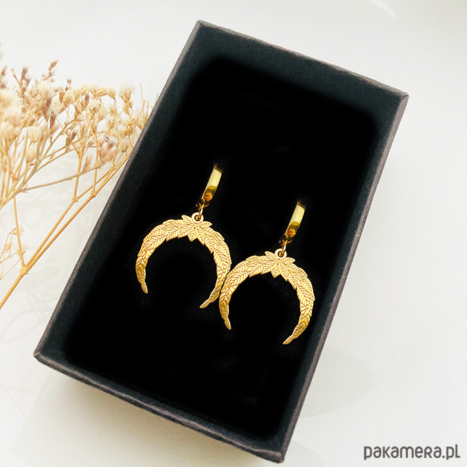 Efektowne kolczyki z wyjątkowym motywem księżyca w kształcie rogu, subtelnie stylizowanego w delikatne liście. Ich oryginalna forma przyciąga spojrzenia i nadaje biżuterii niepowtarzalnego, artystycznego charakteru.
