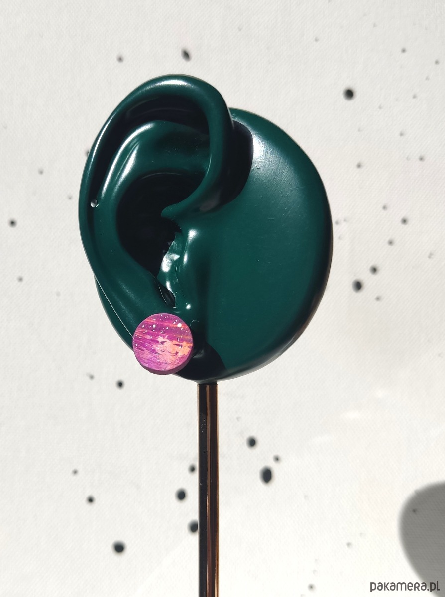 Kolczyki - wkrętki ze sklejki 3mm, wielkość 1,3 cm. Sztyfty ze stali chirurgicznej.