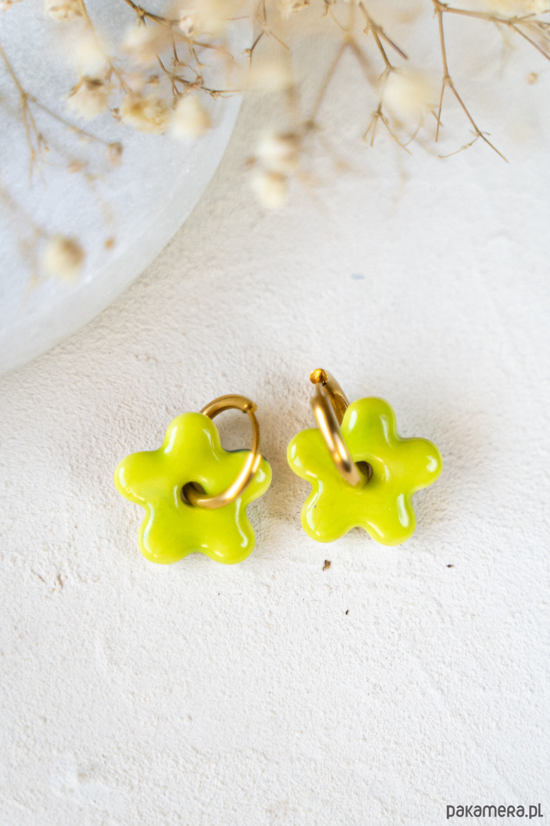 Te urocze kolczyki - kwiatki zostały ręcznie wykonane z najwyższej jakości porcelany i pokryte szkliwem, które nadaje im wyjątkowy blask.