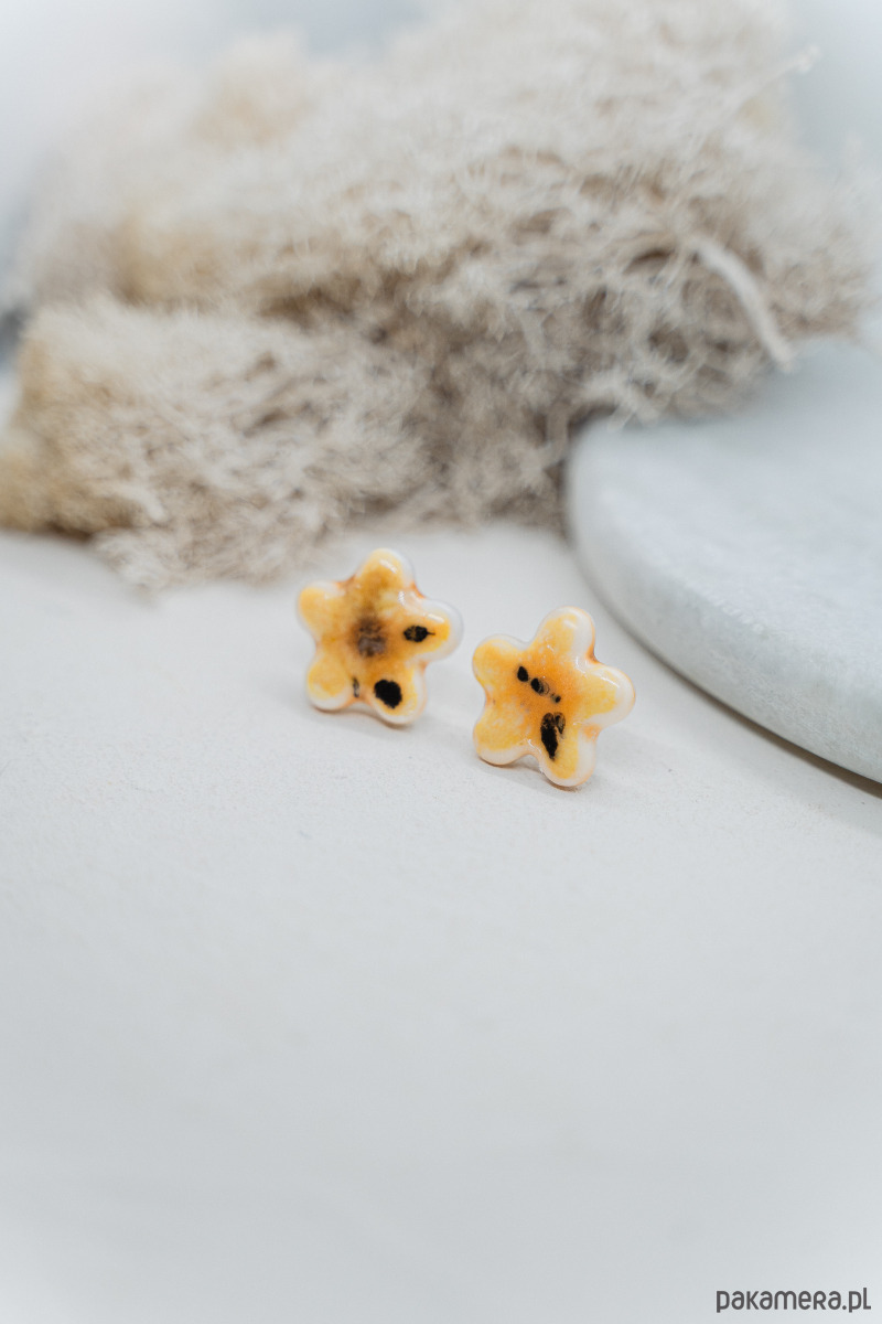 Te urocze kolczyki zostały ręcznie wykonane z najwyższej jakości porcelany i pokryte błyszczącym szkliwem.