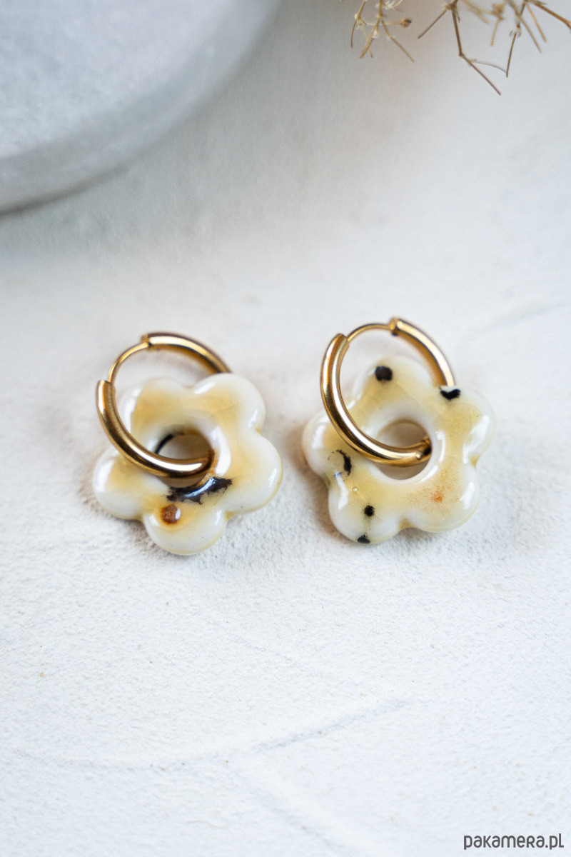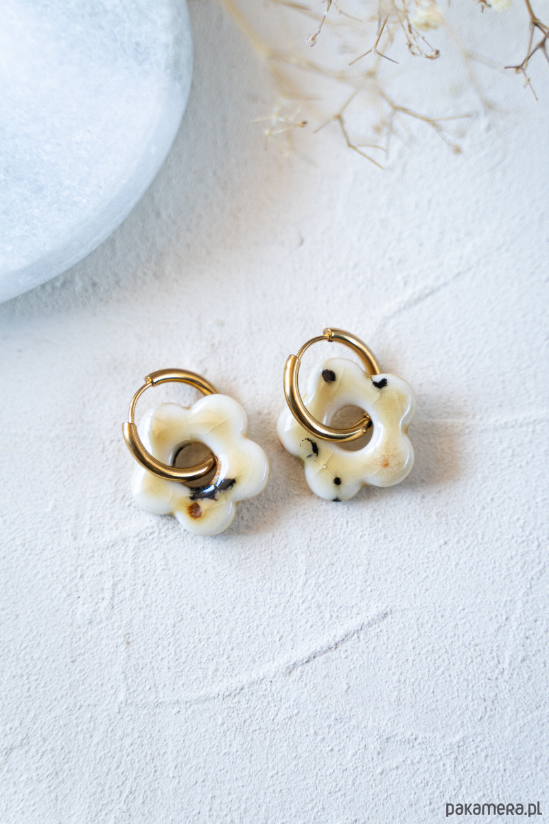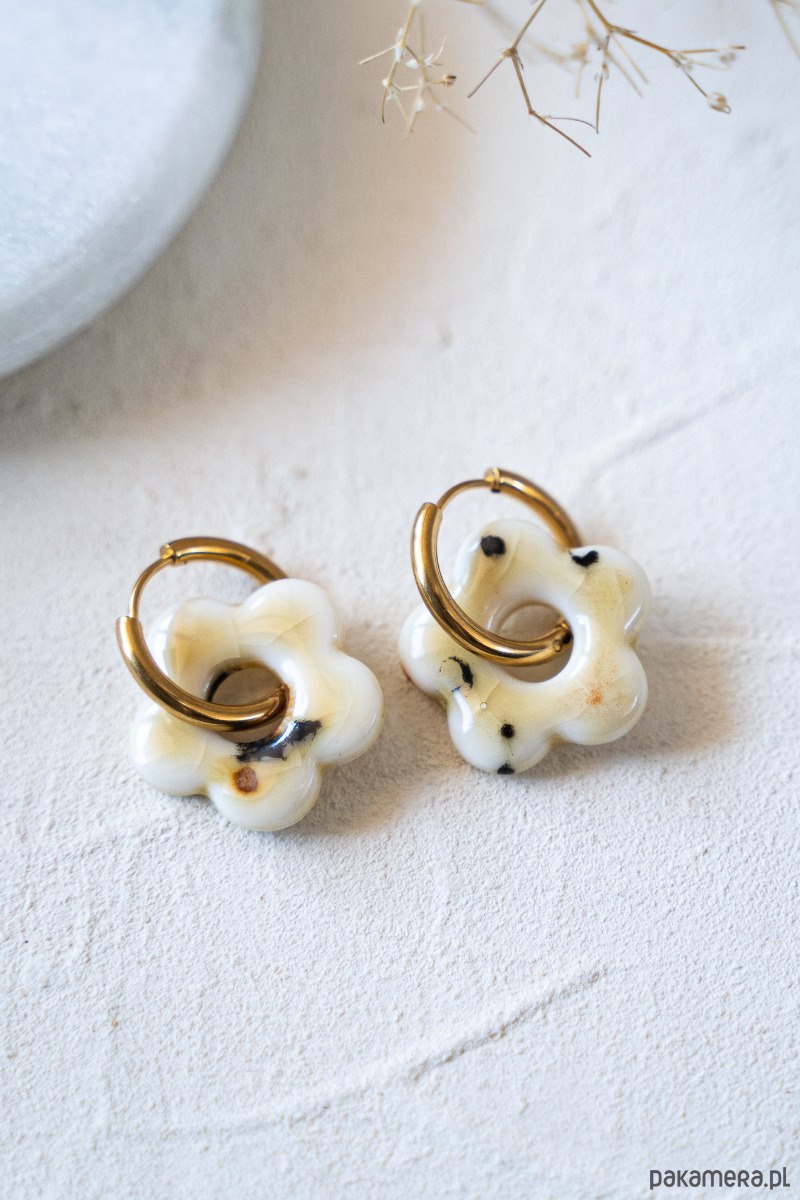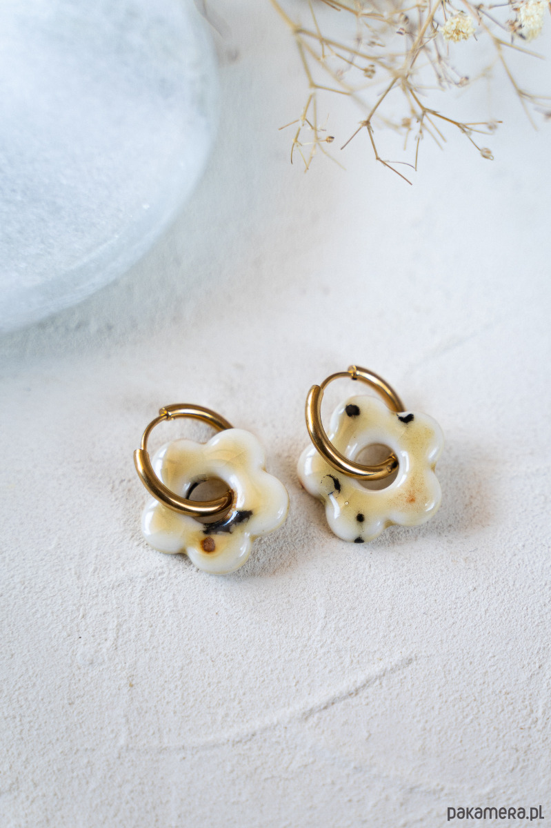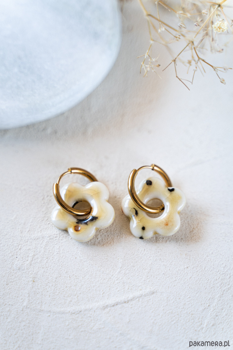Te urocze kolczyki - kwiatki zostały ręcznie wykonane z najwyższej jakości porcelany i pokryte szkliwem, które nadaje im wyjątkowy blask.