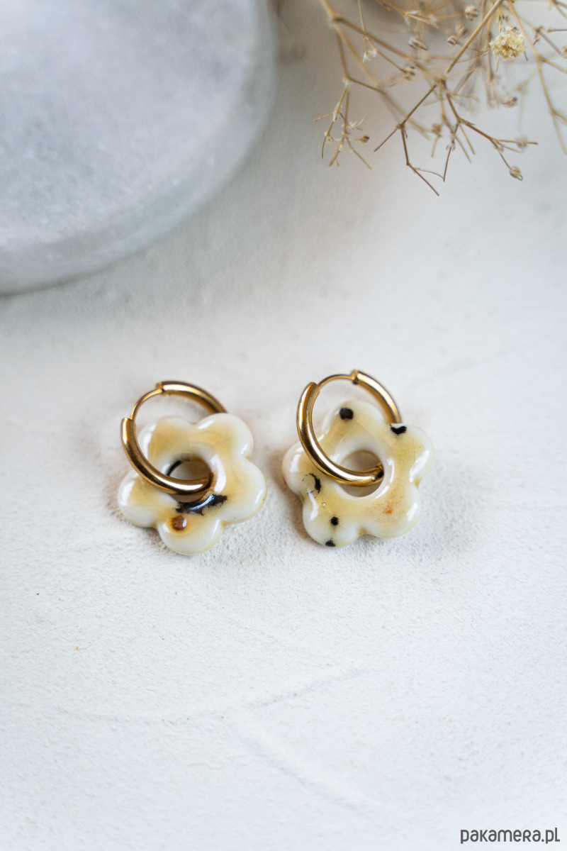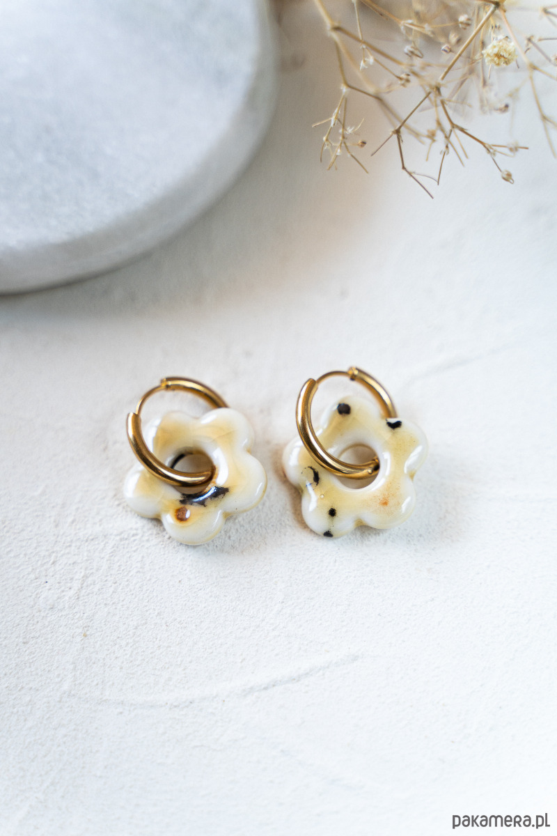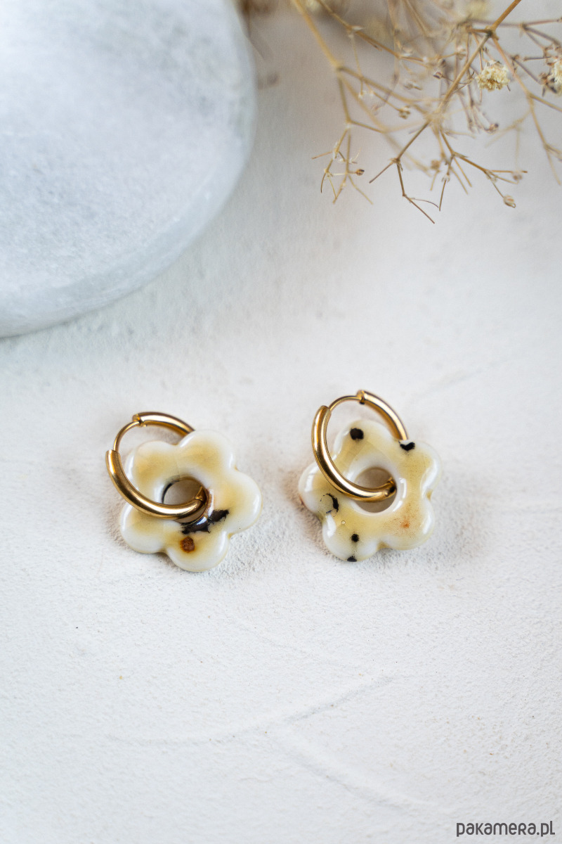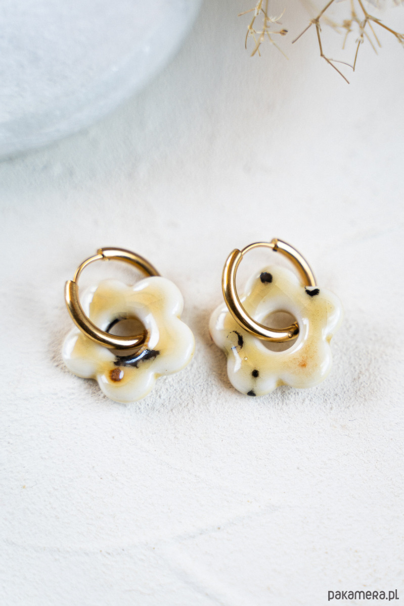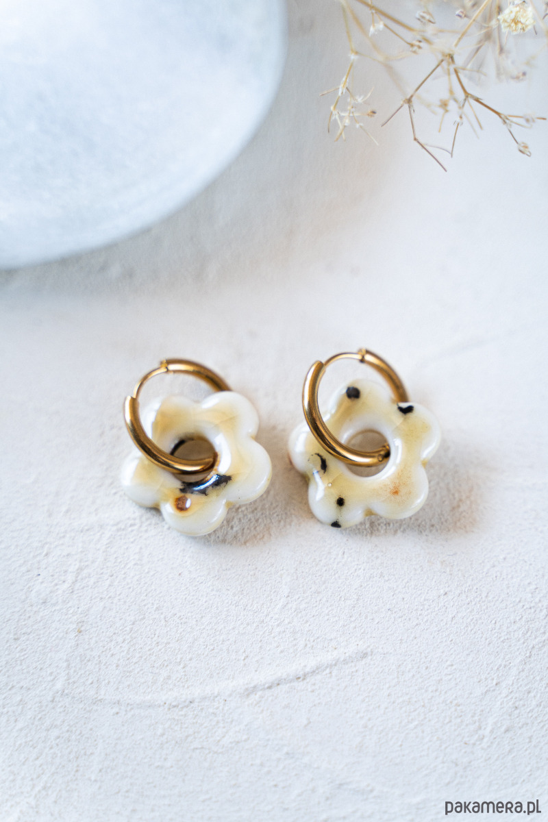 Te urocze kolczyki - kwiatki zostały ręcznie wykonane z najwyższej jakości porcelany i pokryte szkliwem, które nadaje im wyjątkowy blask.