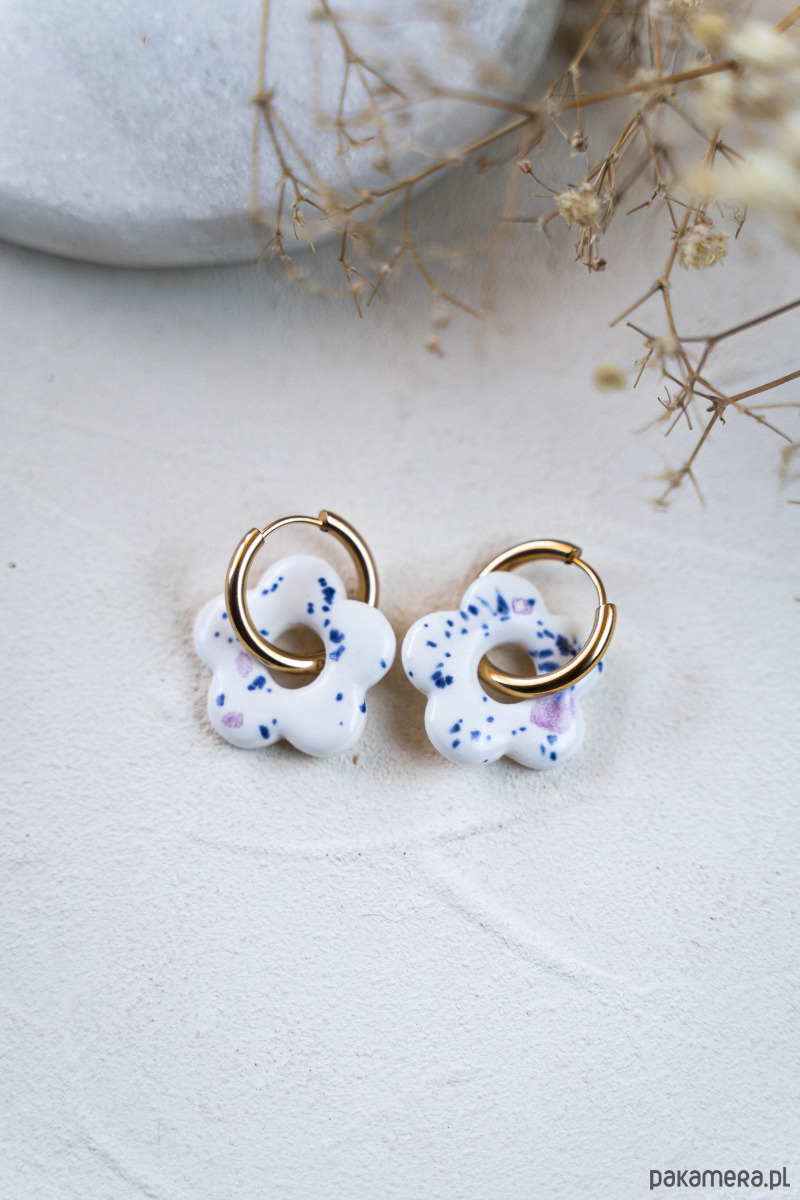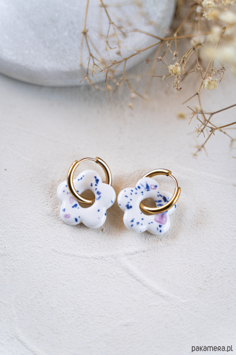 Te urocze kolczyki - kwiatki zostały ręcznie wykonane z najwyższej jakości porcelany i pokryte szkliwem, które nadaje im wyjątkowy blask.