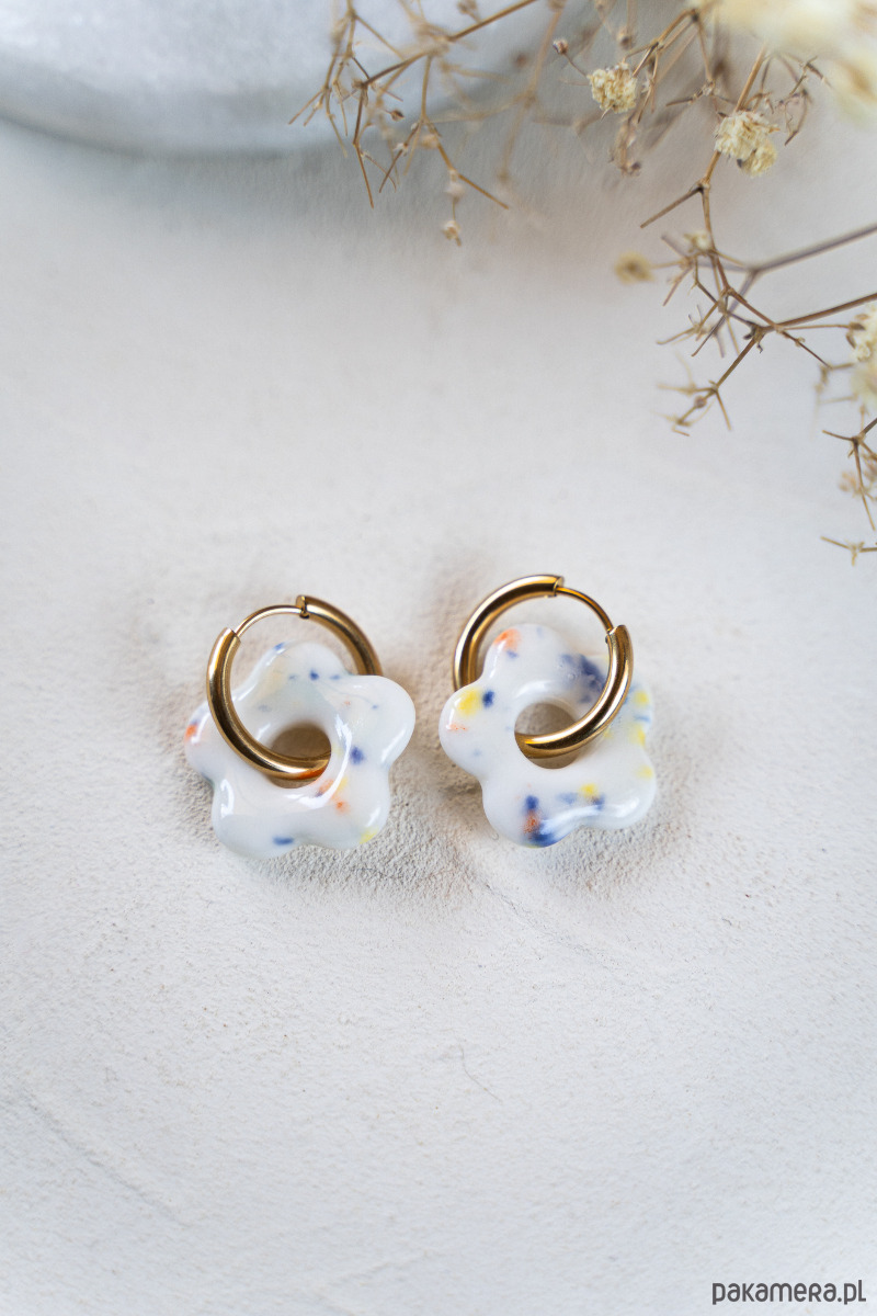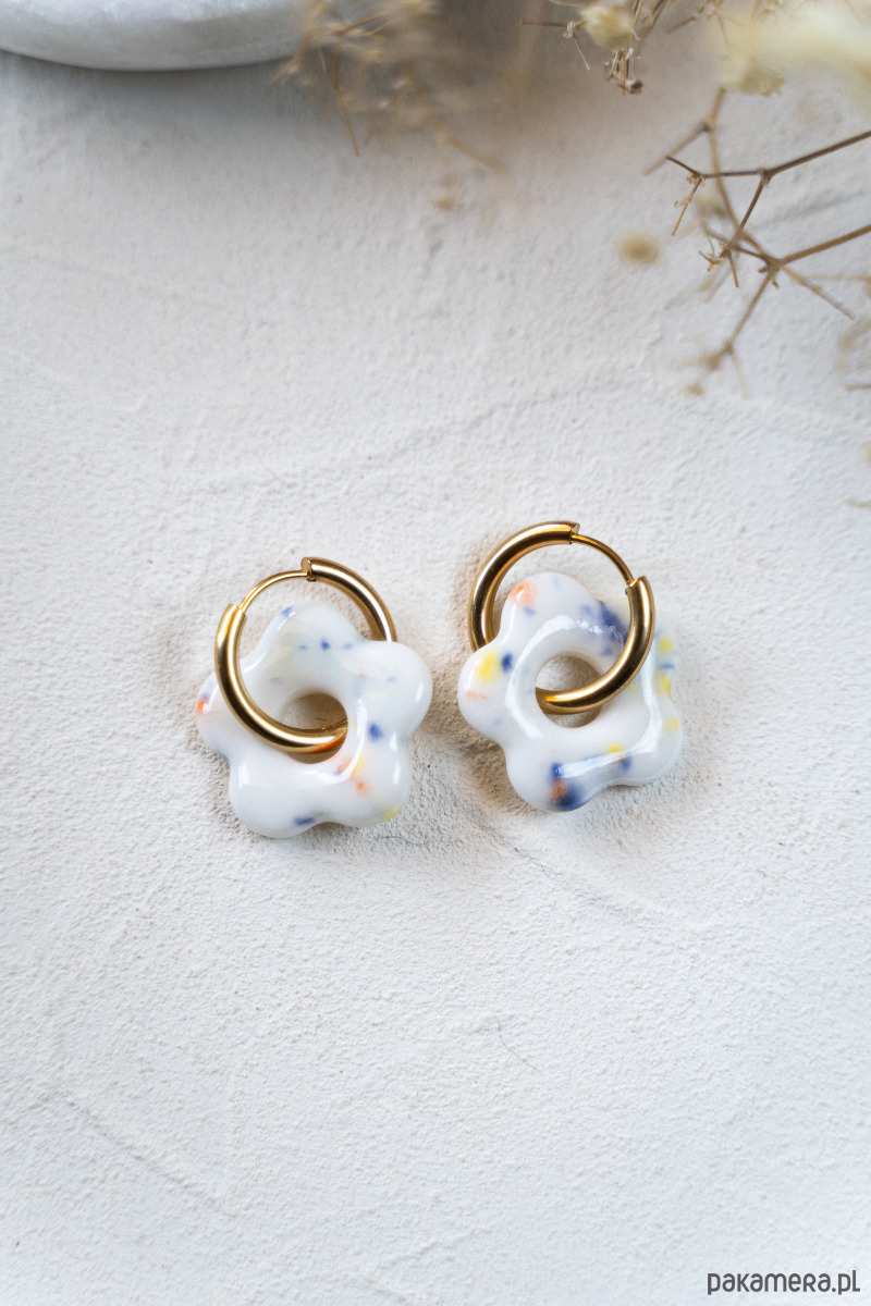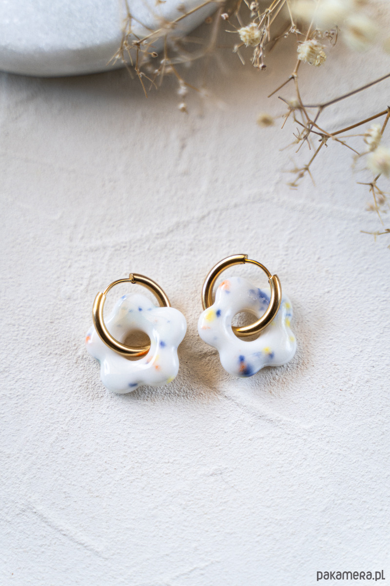 Te urocze kolczyki - kwiatki zostały ręcznie wykonane z najwyższej jakości porcelany i pokryte szkliwem, które nadaje im wyjątkowy blask.