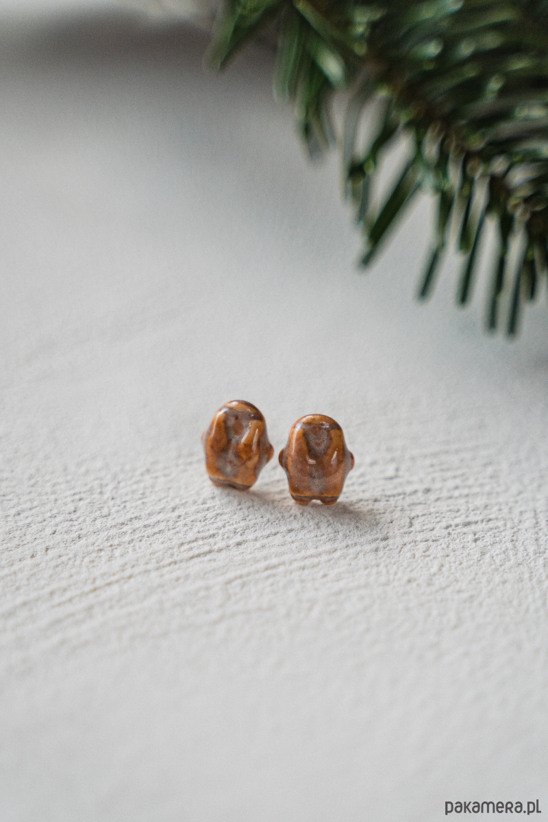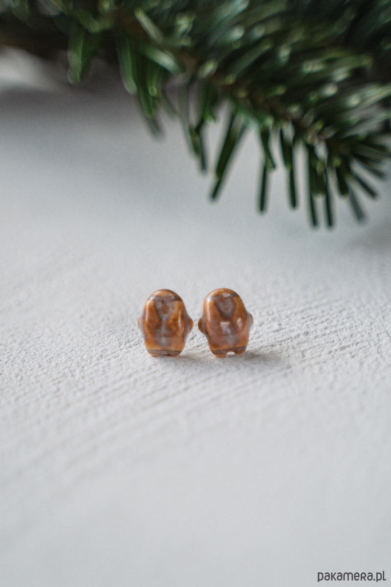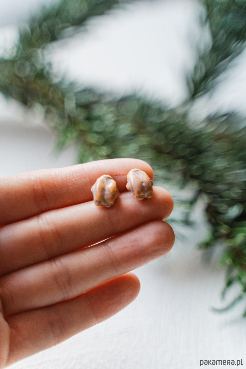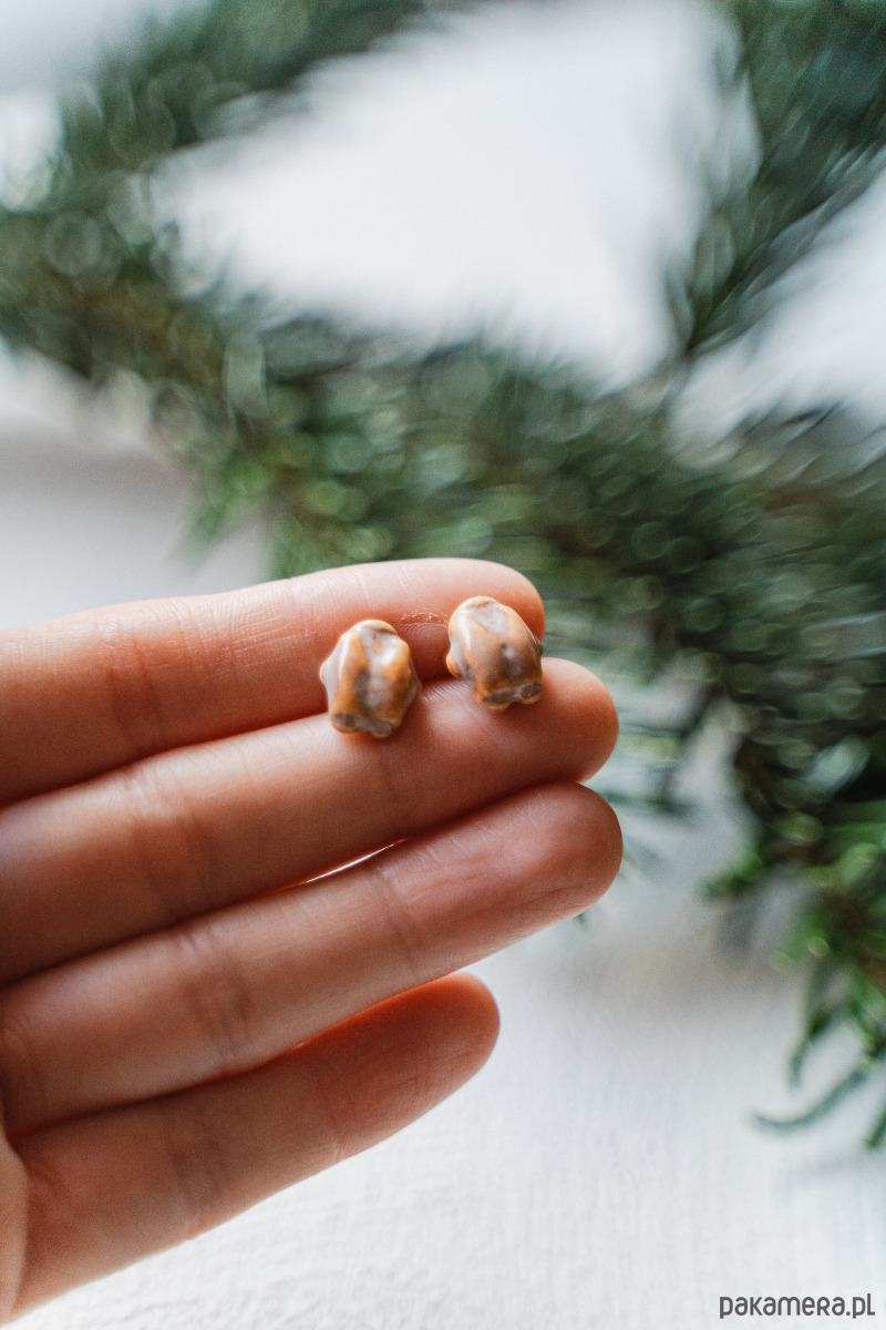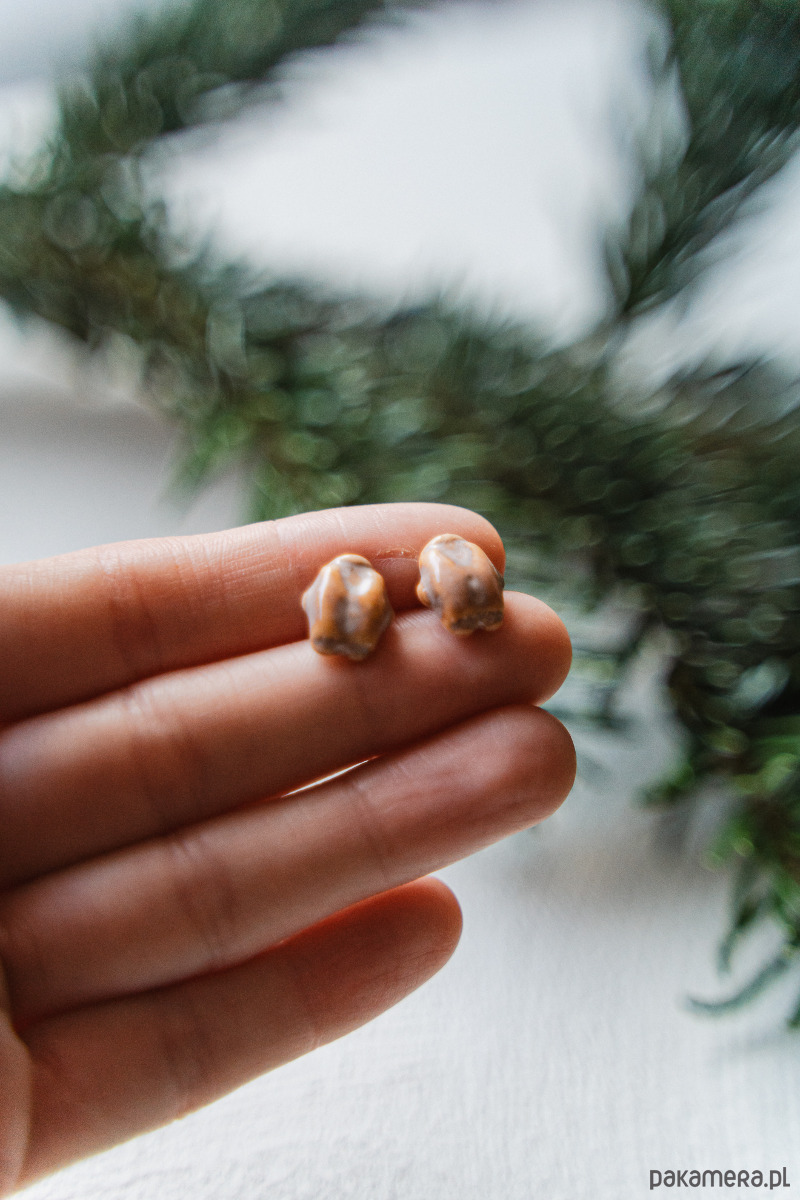 Te urocze kolczyki pierniczki zostały ręcznie wykonane z najwyższej jakości porcelany i pokryte szkliwem, które nadaje im wyjątkowy blask.