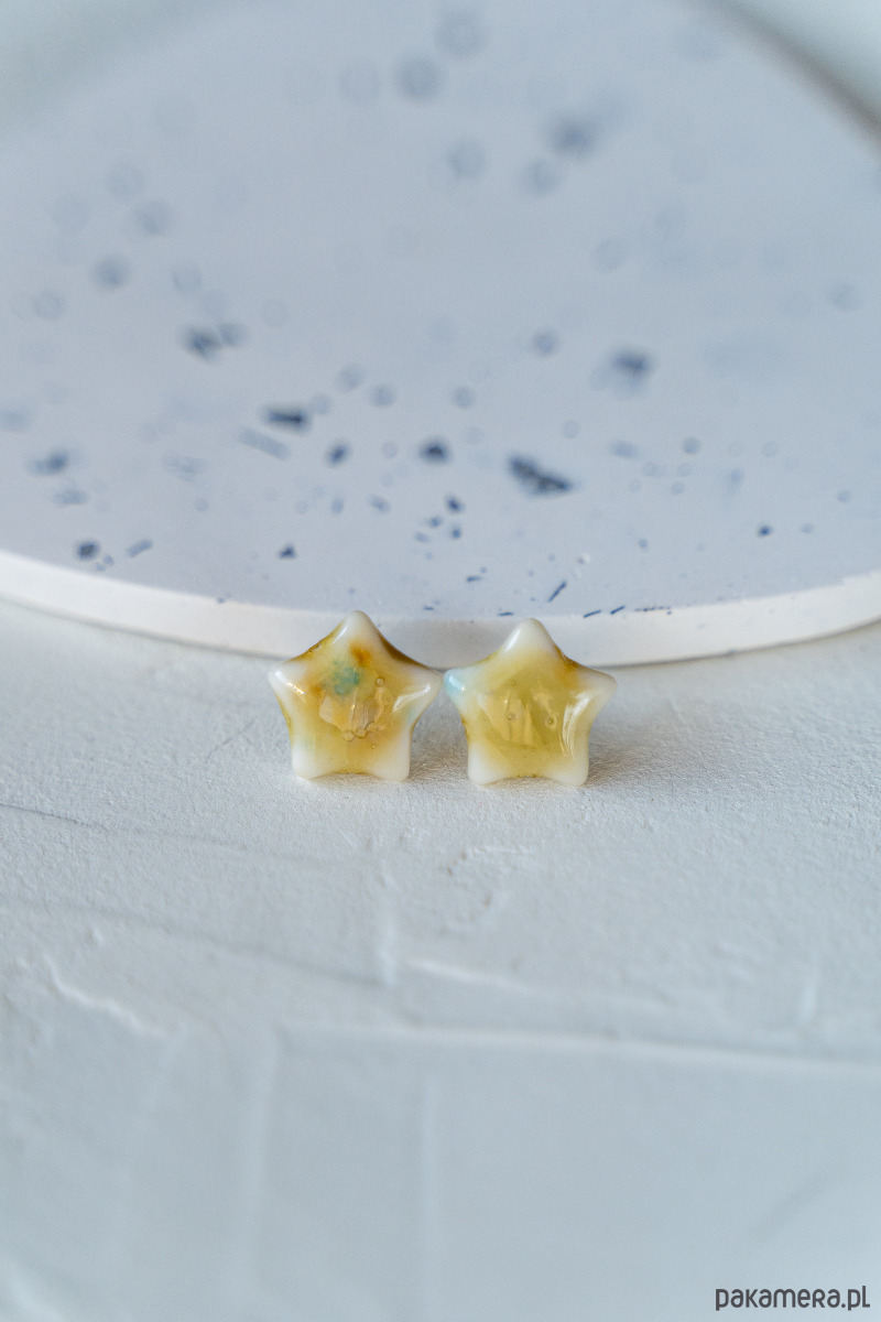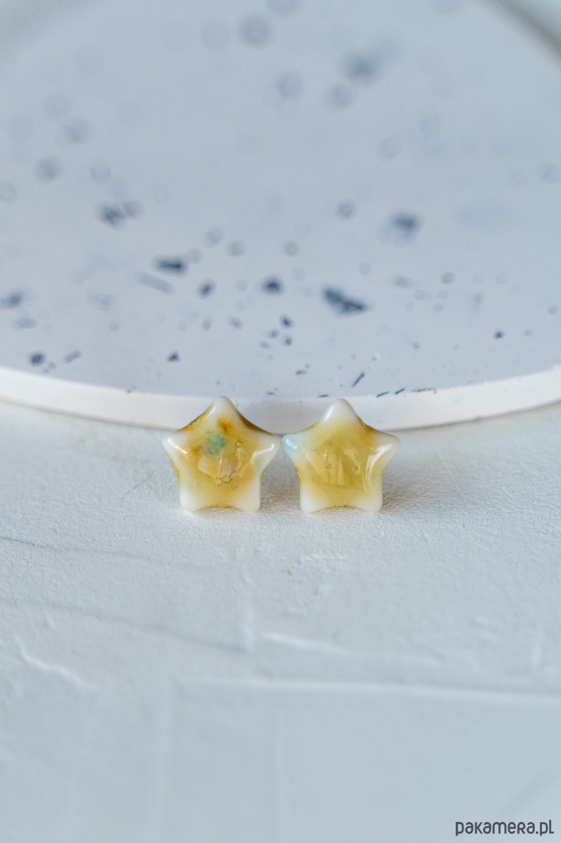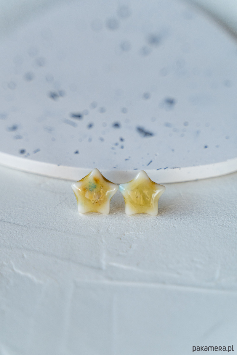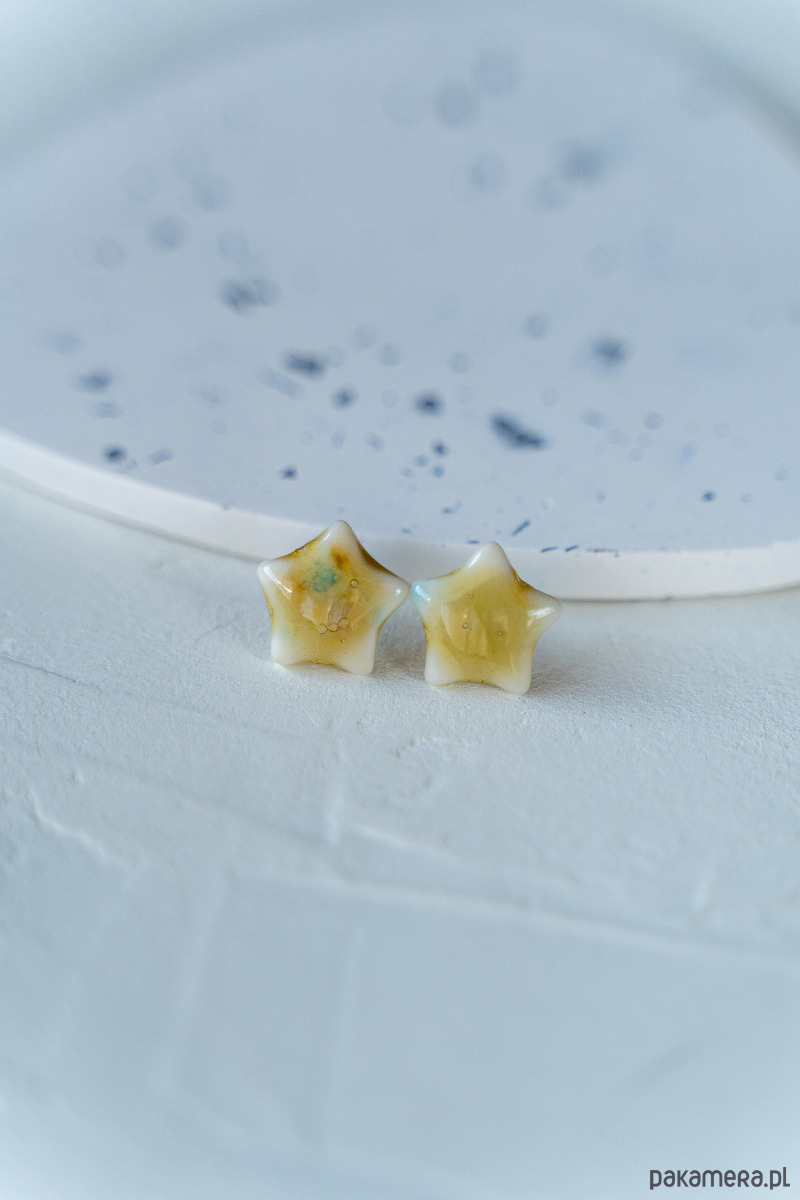 Te kolczyki - gwiazdki zostały ręcznie wykonane z najwyższej jakości porcelany i pokryte błyszczącym szkliwem.