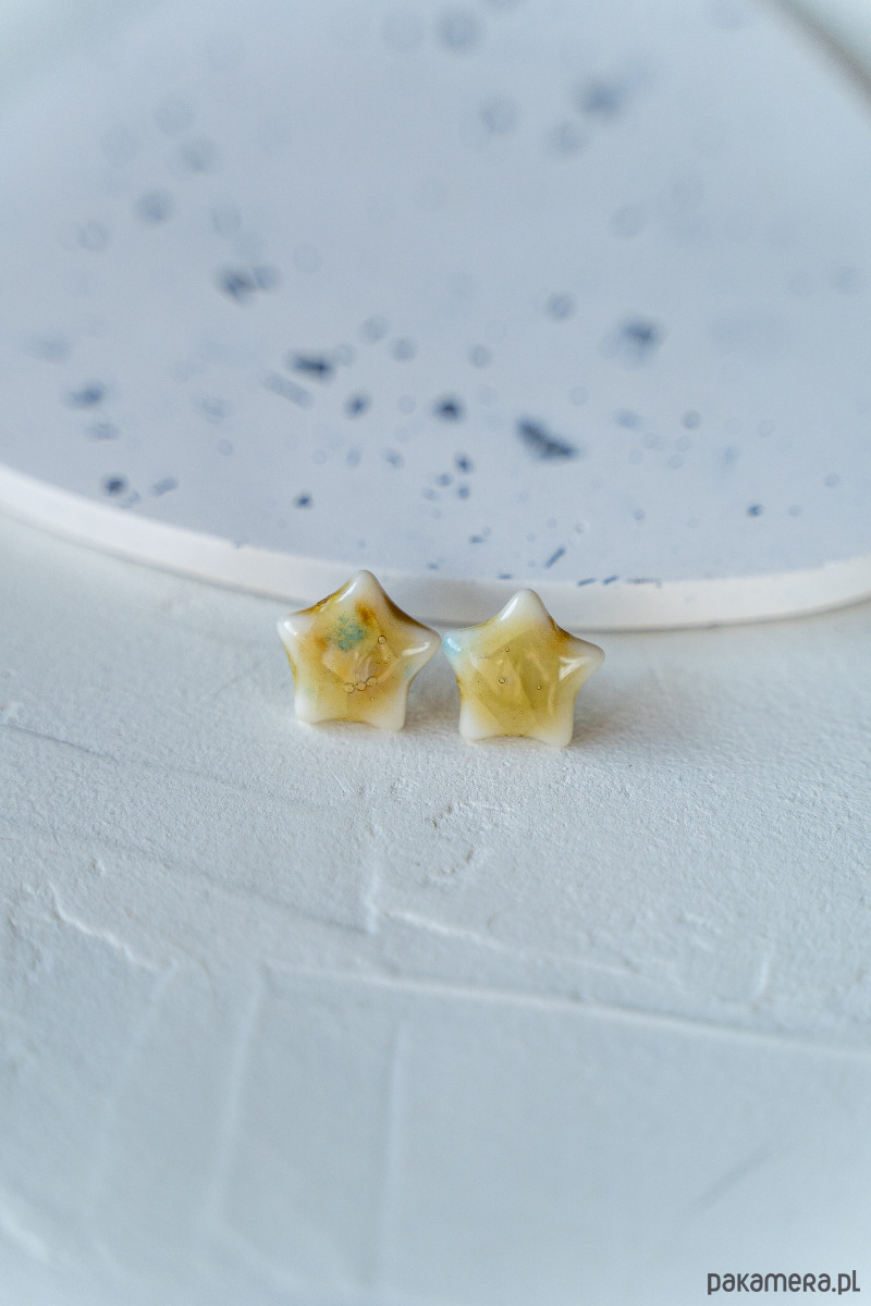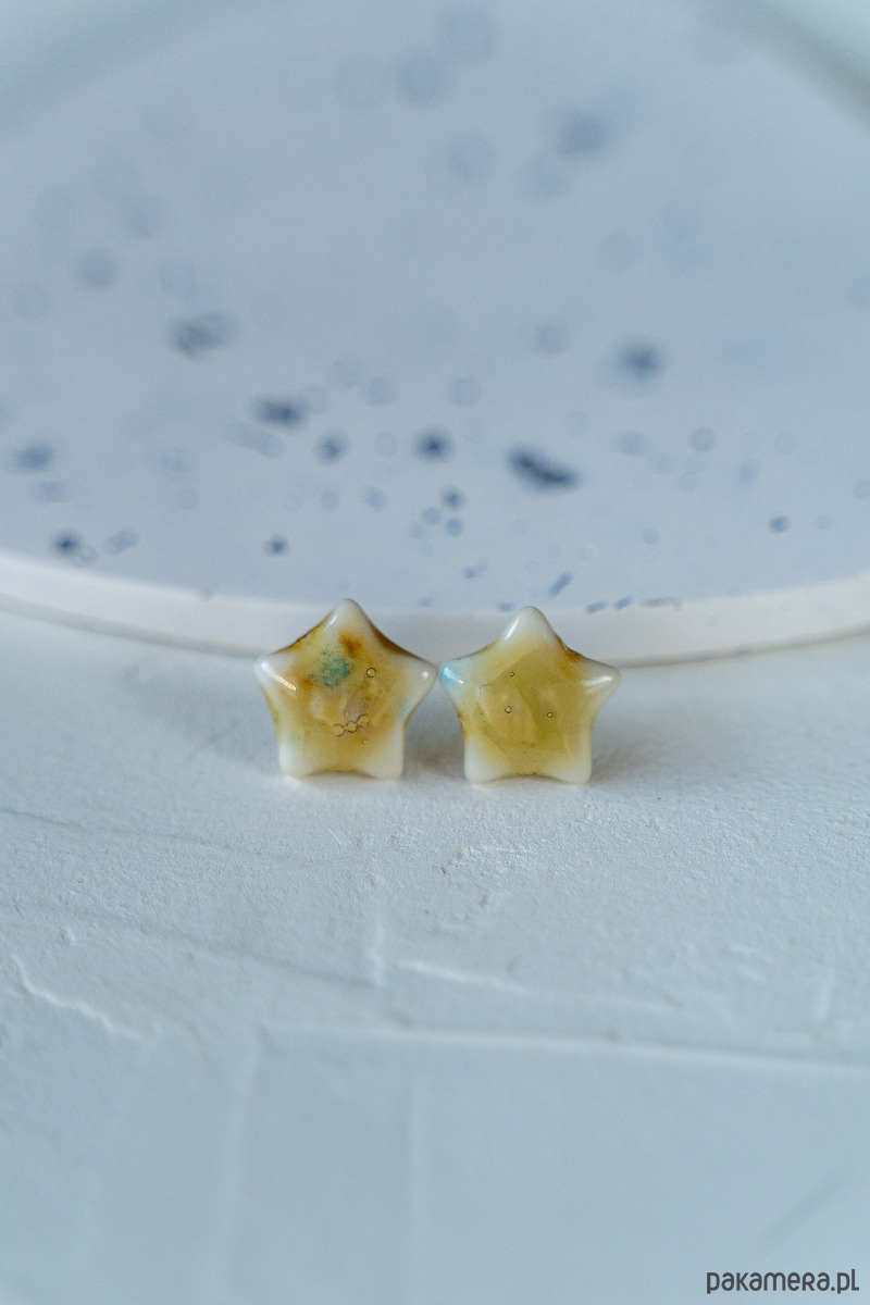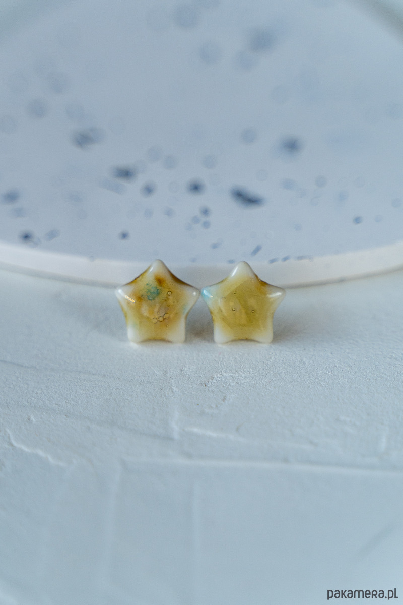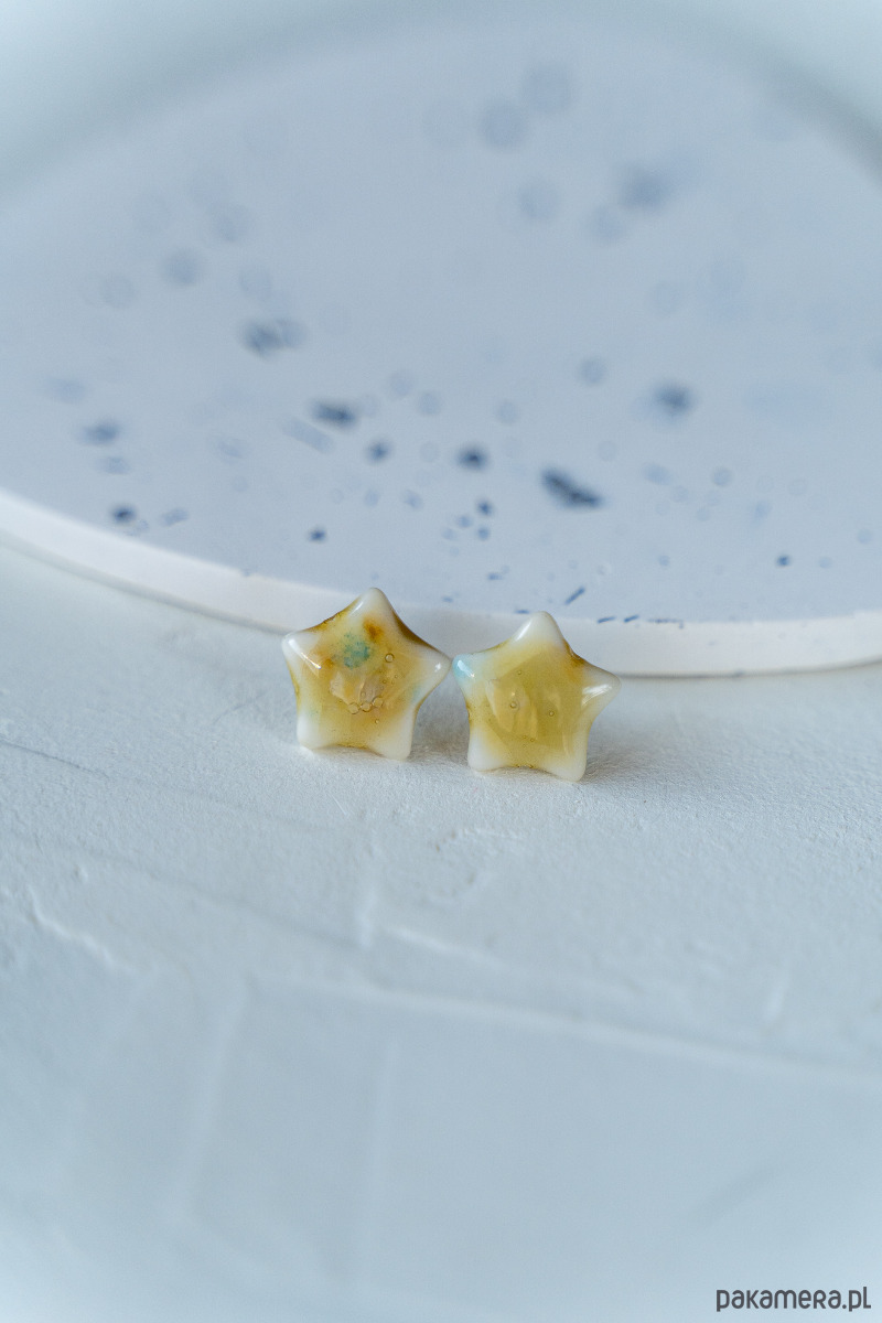 Te kolczyki - gwiazdki zostały ręcznie wykonane z najwyższej jakości porcelany i pokryte błyszczącym szkliwem.