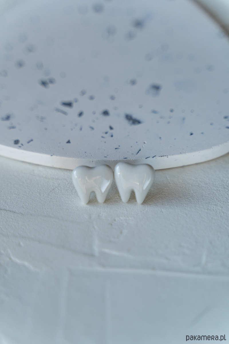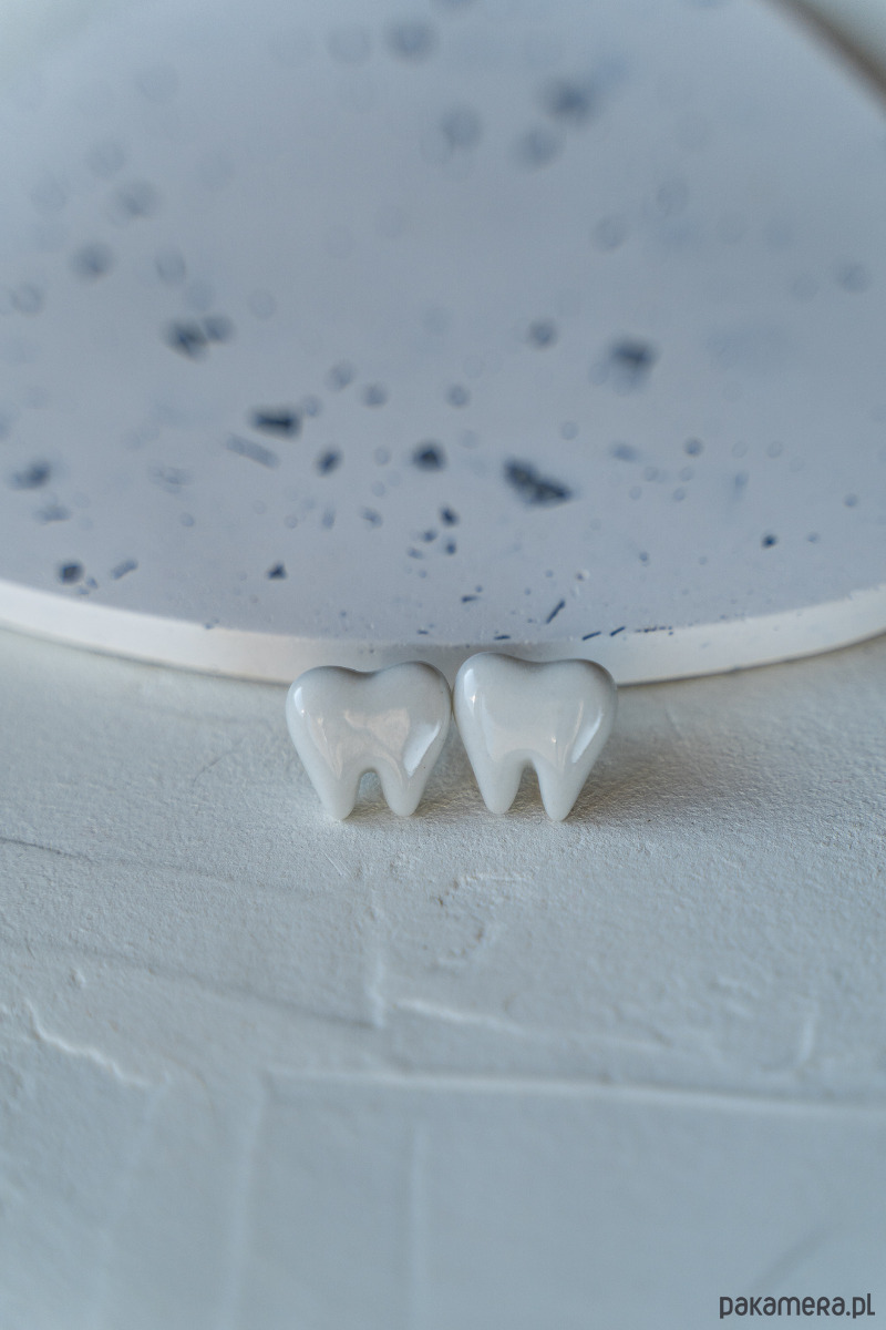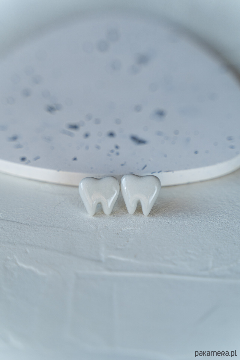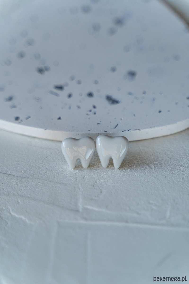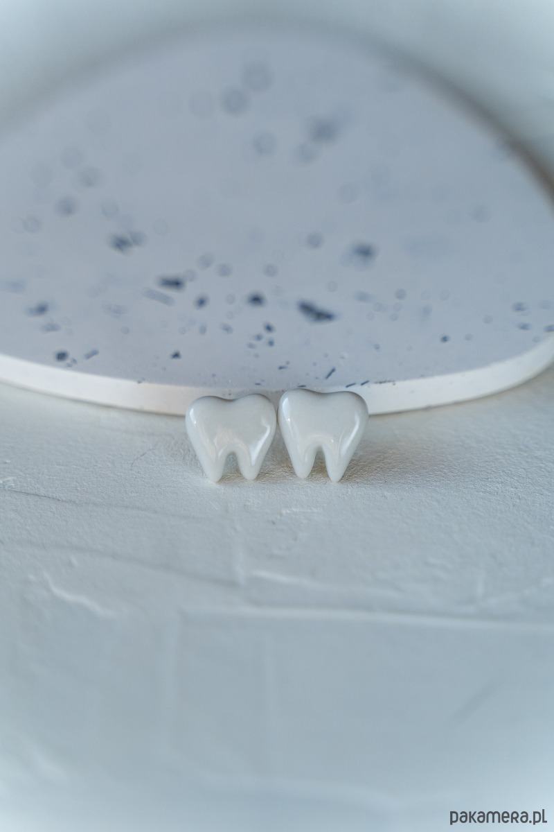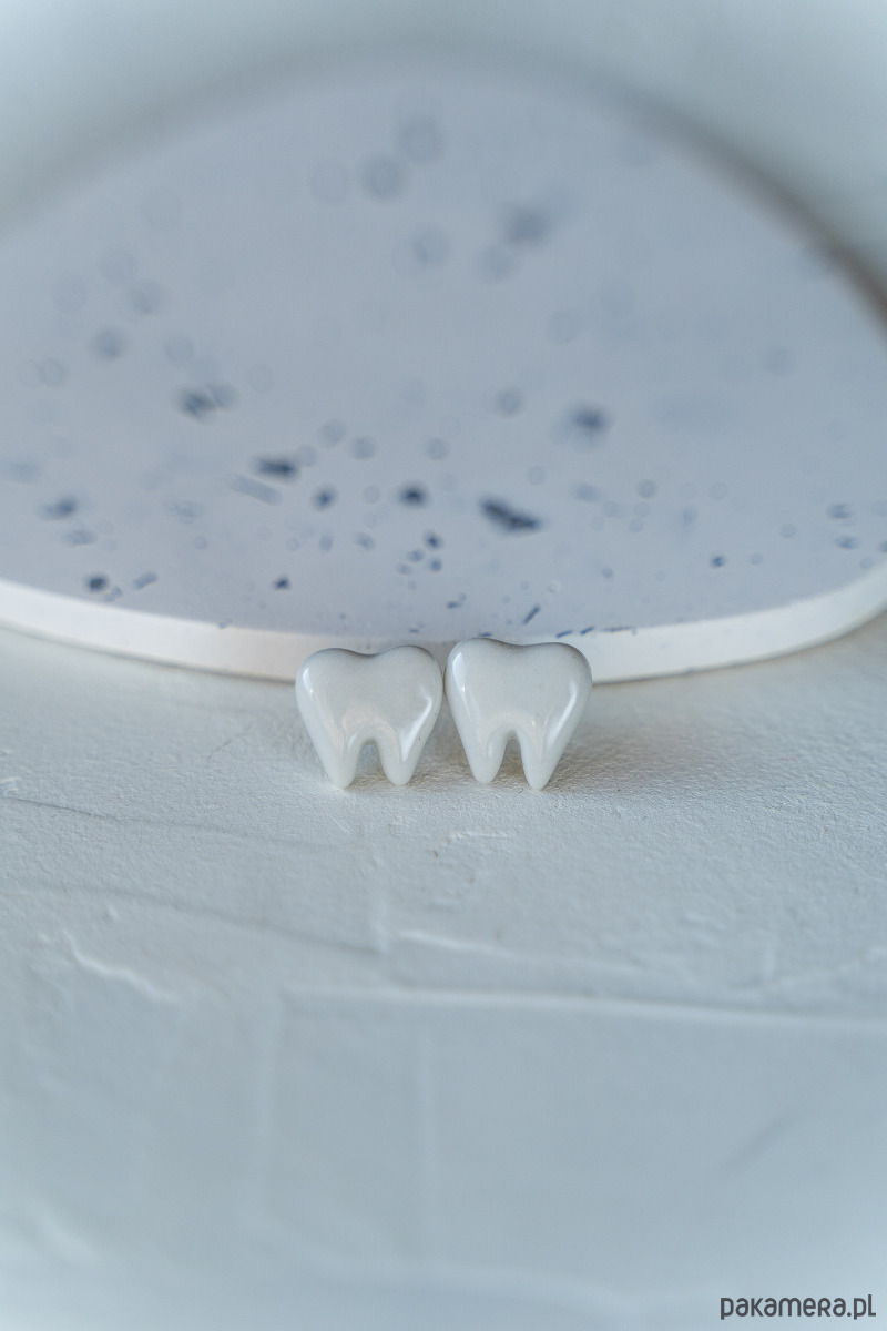 Te kolczyki - zęby zostały ręcznie wykonane z najwyższej jakości porcelany i pokryte błyszczącym szkliwem.