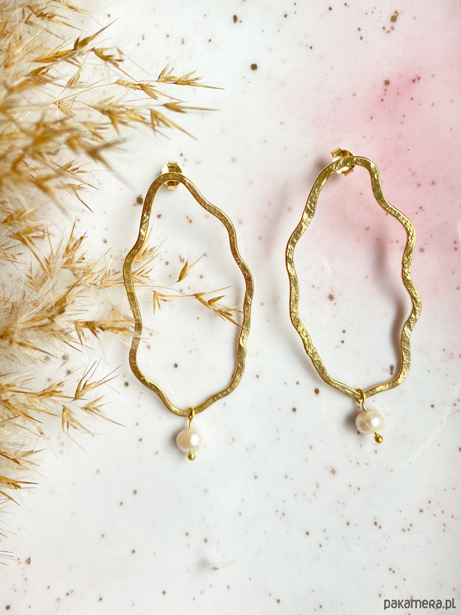 Wykonane z mosiądzu pokrytego 24 – karatowym złotem (sztyfty i zapięcia są ze srebra) z naturalną perłą.