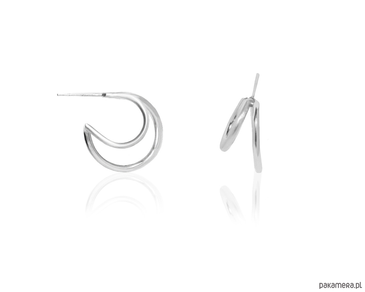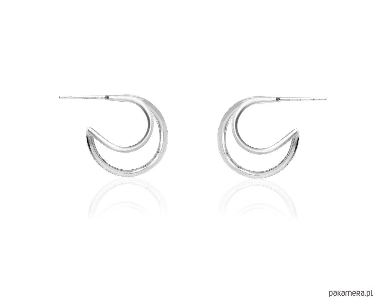 Podwójne kolczyki zapinane na sztyft. Z profilu forma nawiązuje do księżyca. Wykonane ze srebra 925 ręcznie w Polsce i zapakowane w firmowe pudełko.