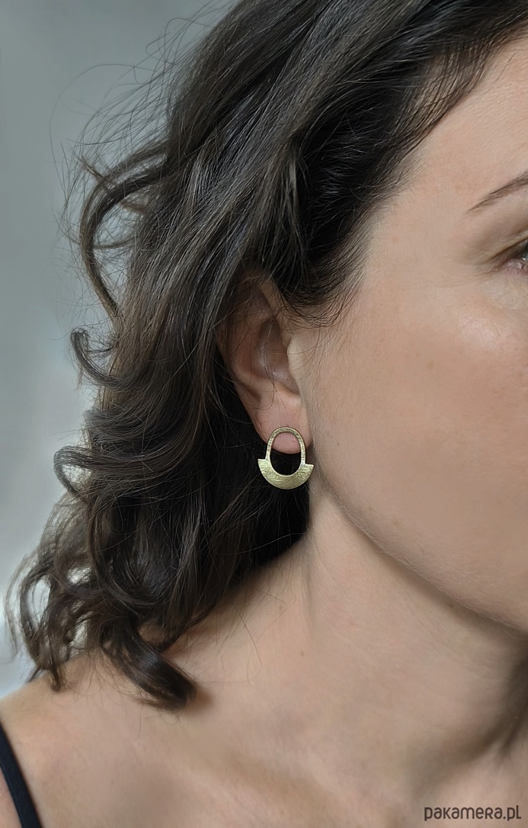 Kolczyki wykonane w całości ręcznie zze srebra próby 925 oraz mosiądzu, pokrytego wysokiej jakości 24-karatowym złotem. Ich matowa powierzchnia o wyraźnej fakturze sprawia, że pięknie odbijają światło, nadając całości wyjątkowy, oryginalny charakter.