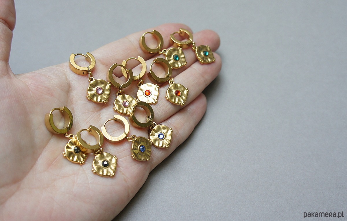 Kolczyki pozłacane Alloys Collection Coins /blue zircone/ vol. 2