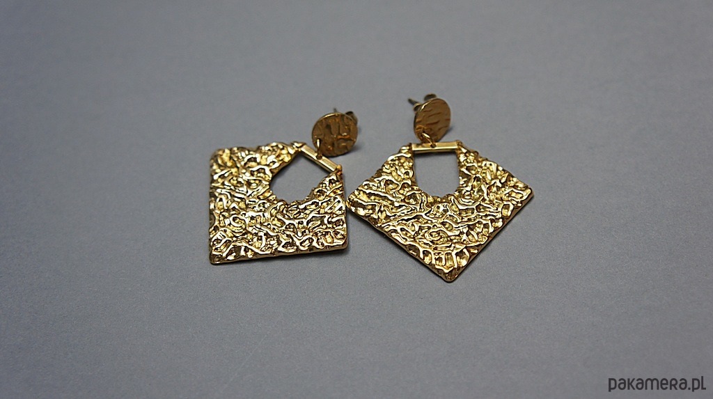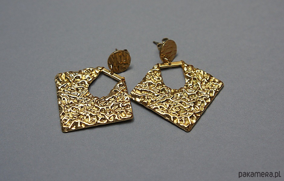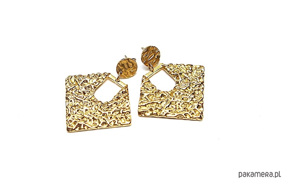 Duże, wyraziste kolczyki wykonane z pozłacanej stali szlachetnej. Średnica emblematów 4 cm x 3,5cm. Zapięcie - sztyfty. Długość całkowita kolczyków: 4,5cm;