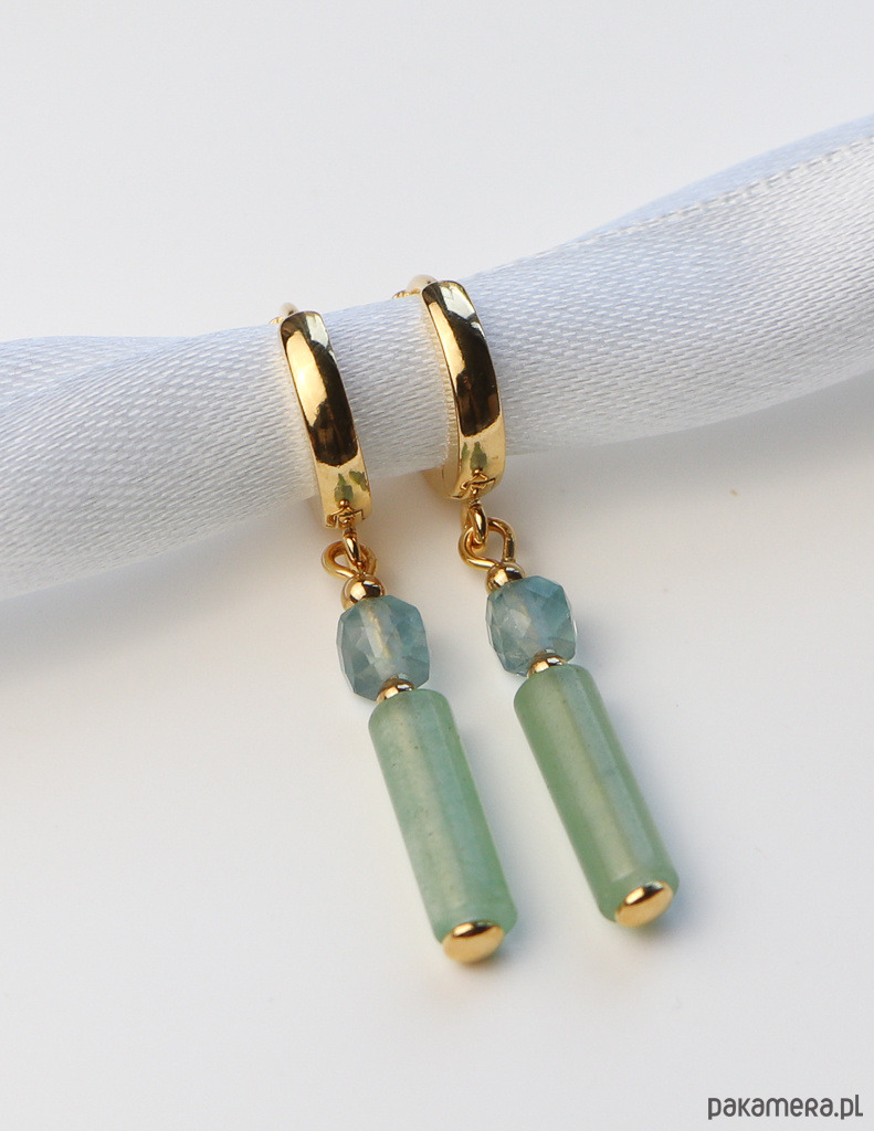 Kolczyki pozłacane - Awenturyn i Fluoryt