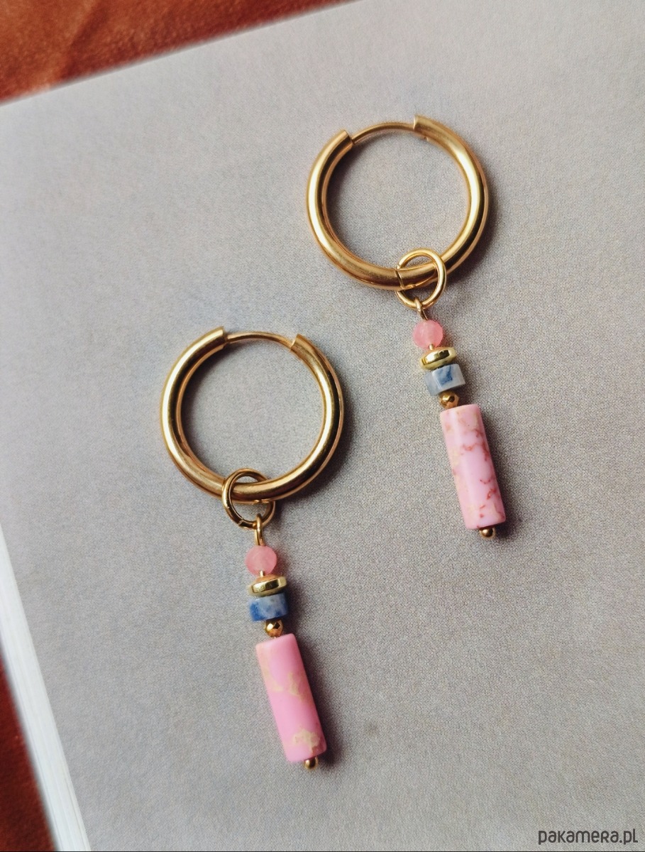 Kolczyki z jaspisu,agatów i hematytów .Bigle ze stali chirurgicznej.