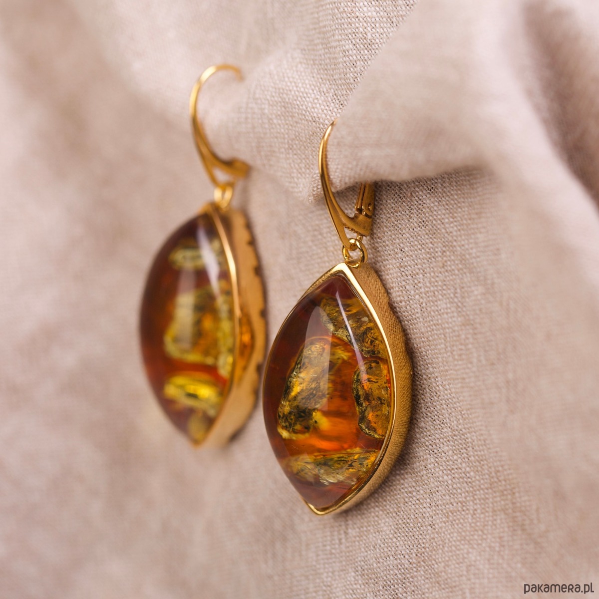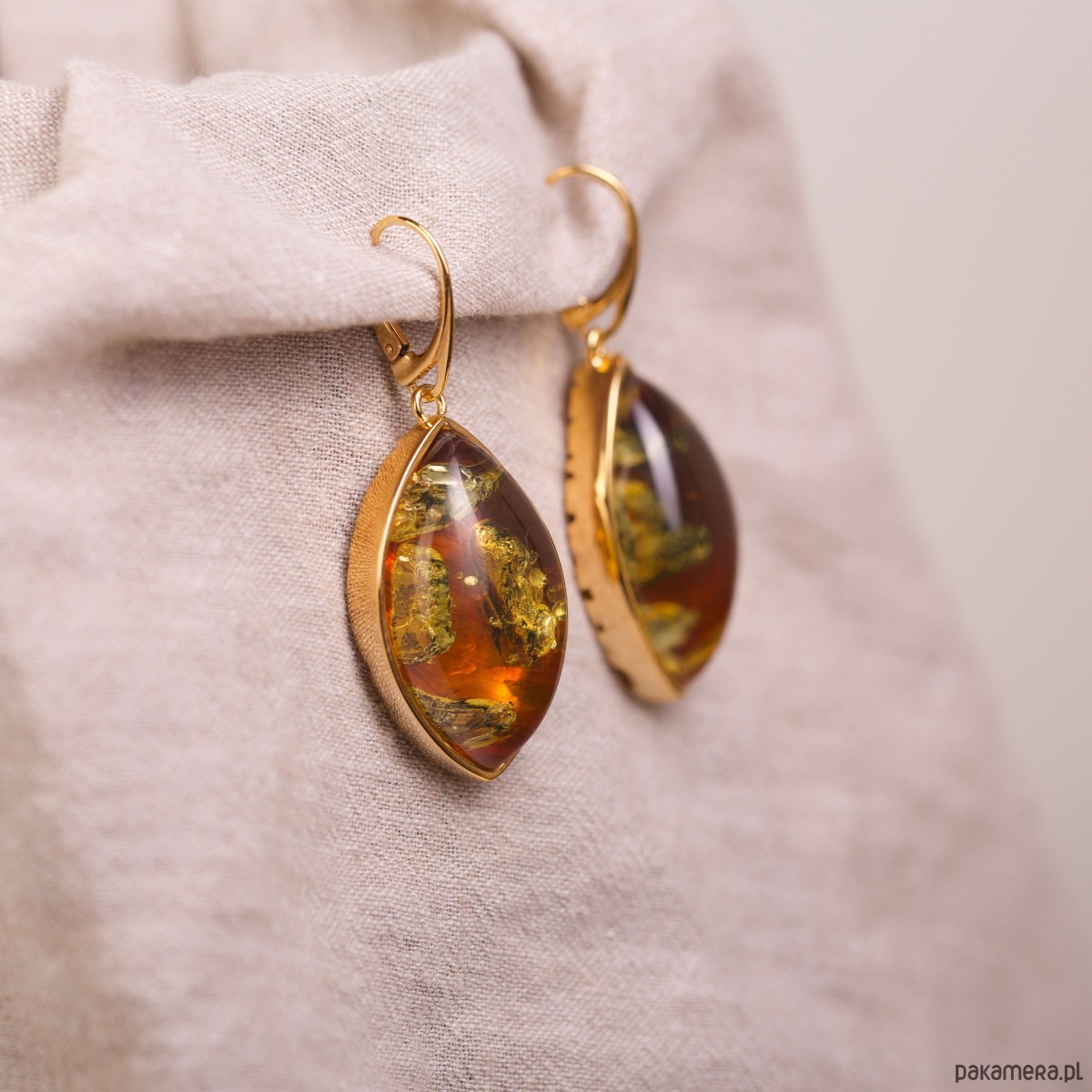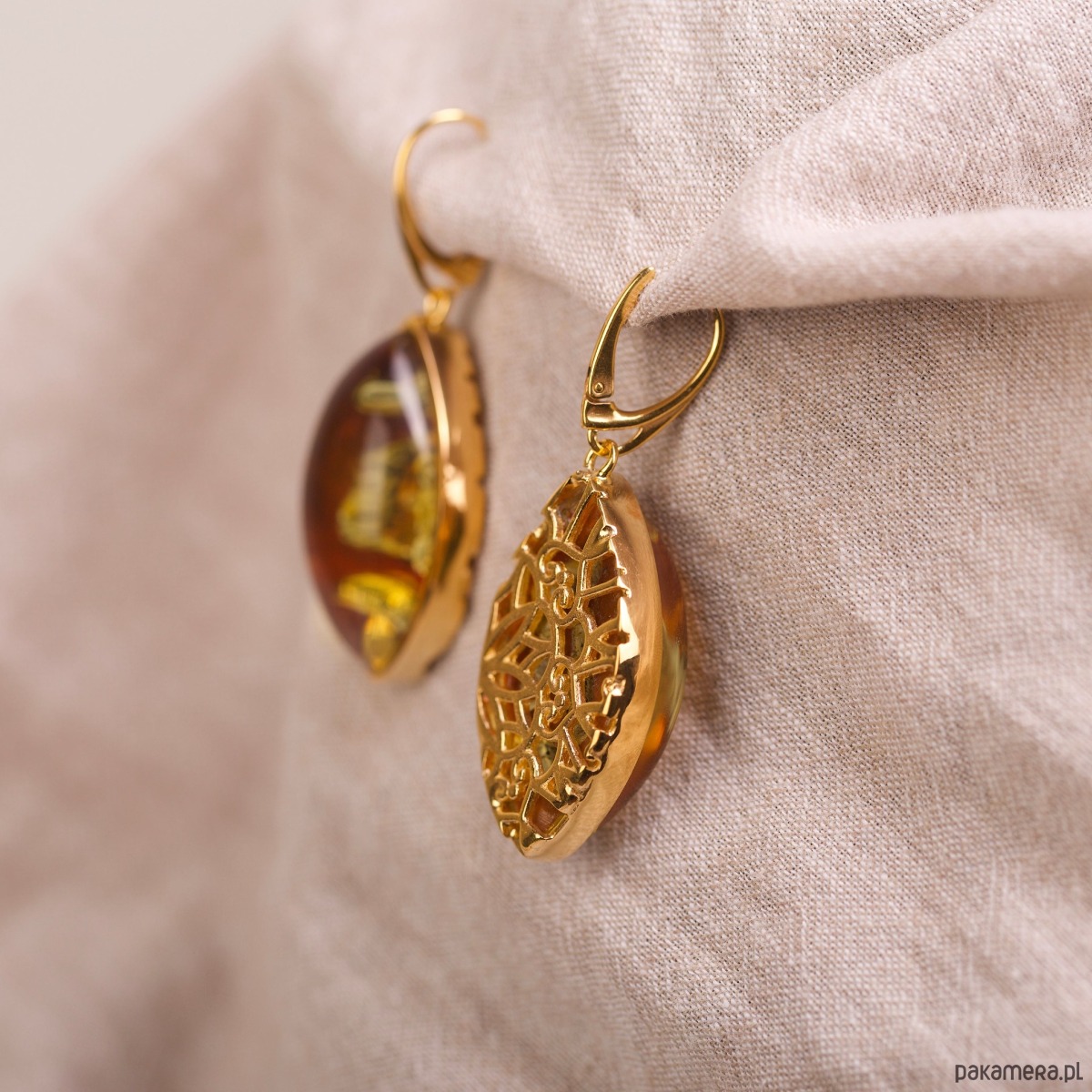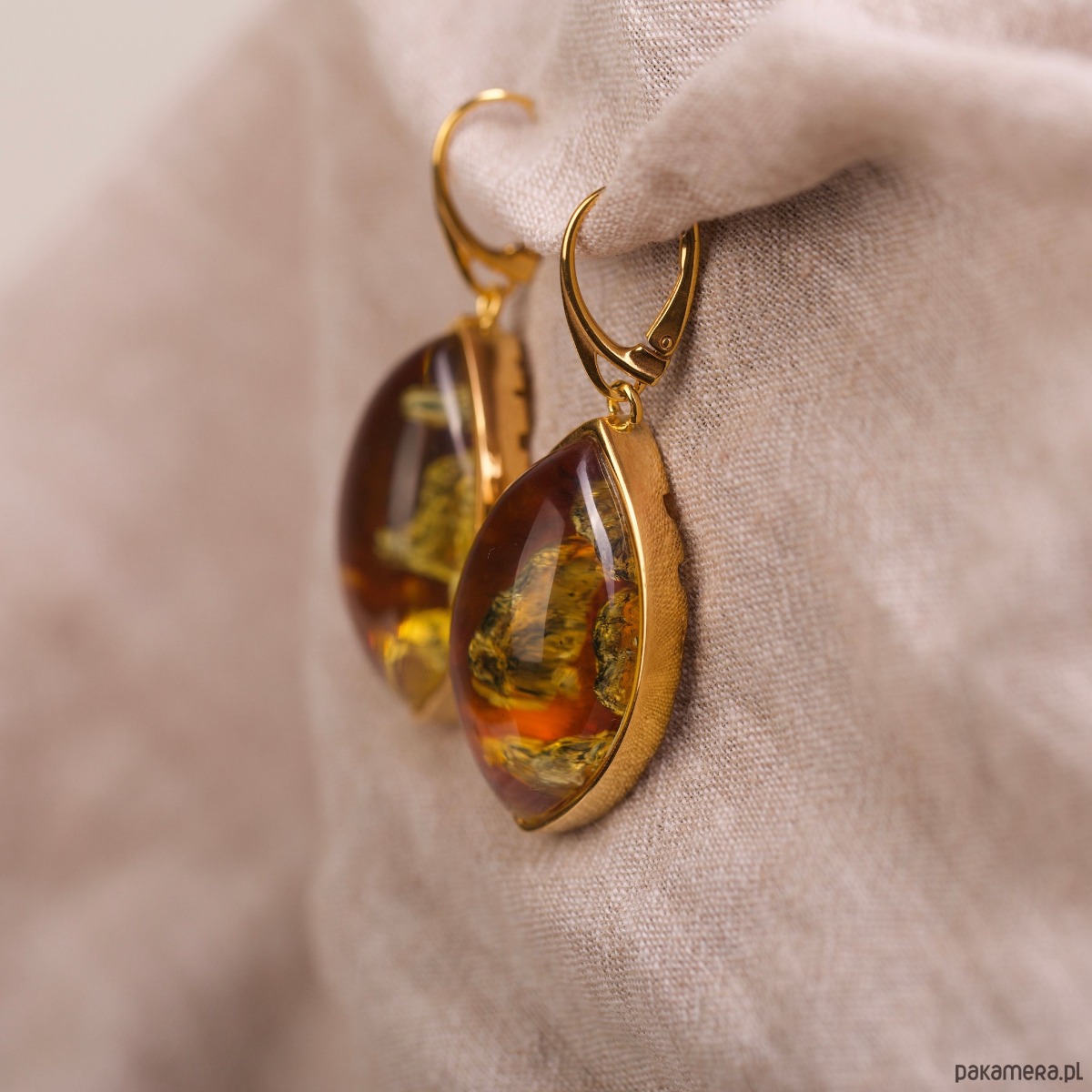 Kolczyki pozłacane Catherina bursztyn bałtycki