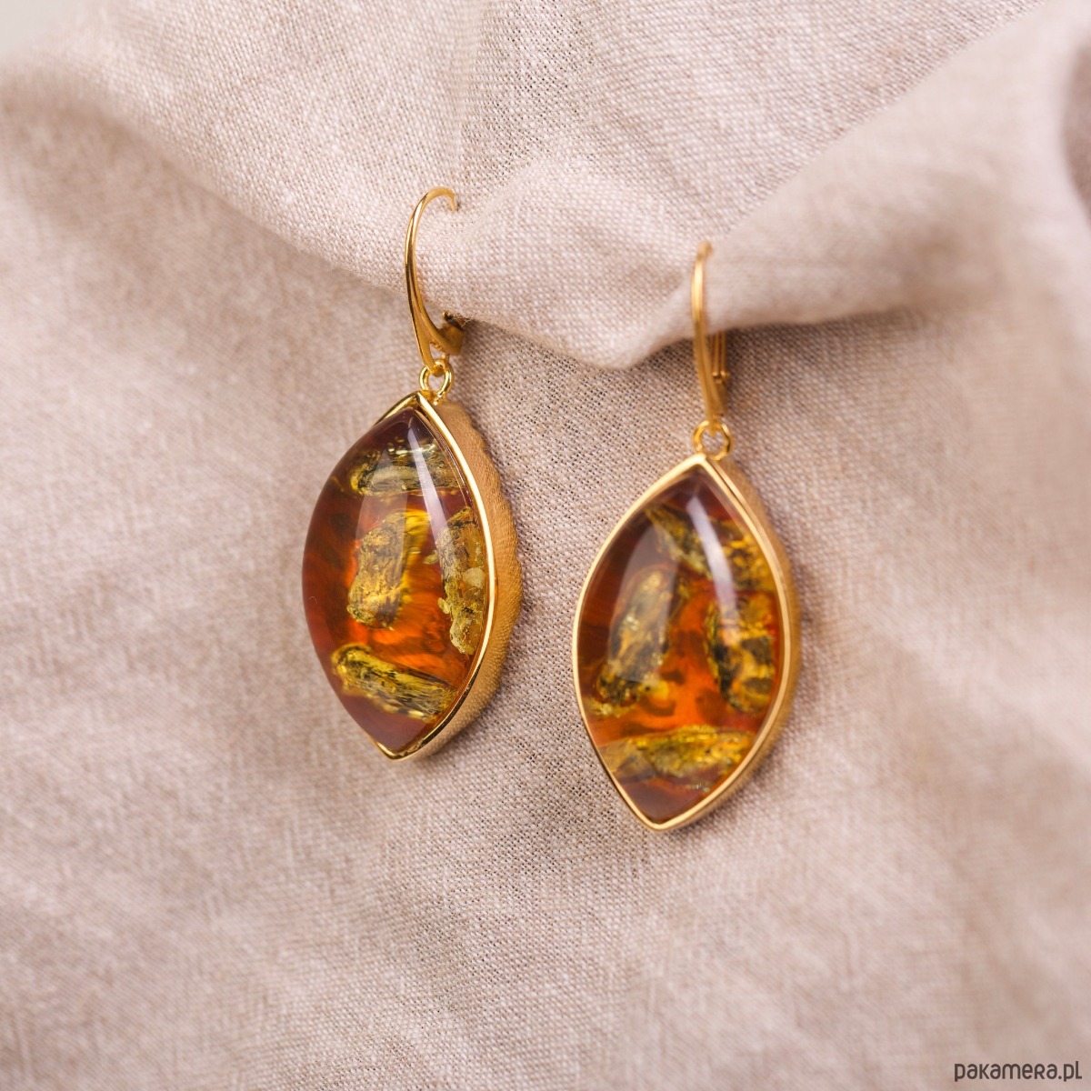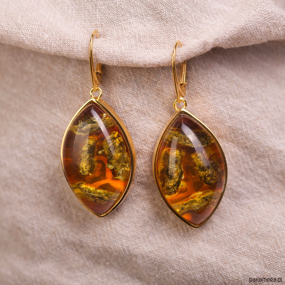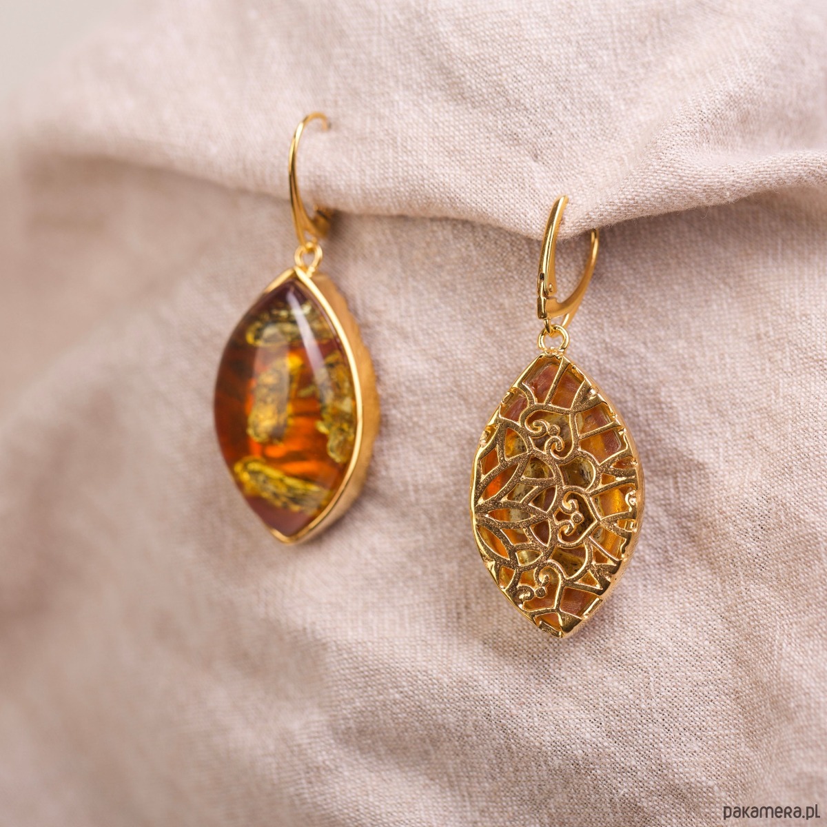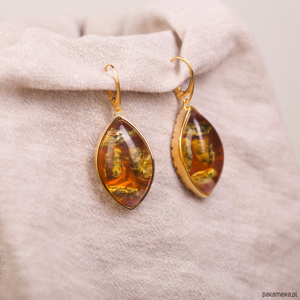Kolczyki pozłacane Catherina bursztyn bałtycki