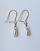 Delikatne kolczyki z prawdziwych, drobnych pereł. Perełki mają nieregularny, lekko podłużny kształt. Zostały ozdobione kamykiem szlifowanego, lśniącego topazu i zawieszone na prostym zapinanym biglu. Bardzo gustowne, eleganckie.