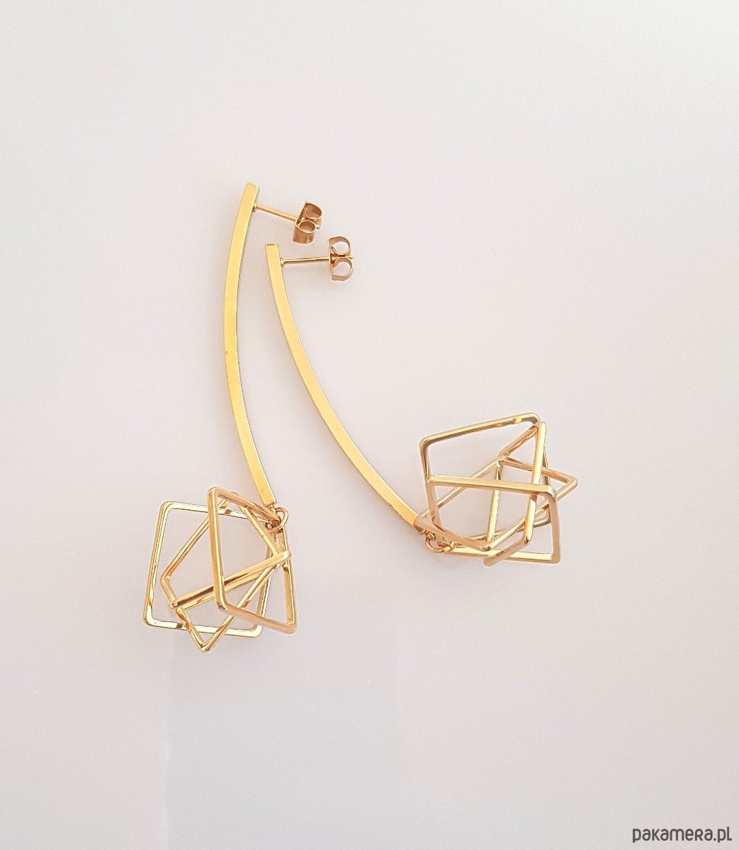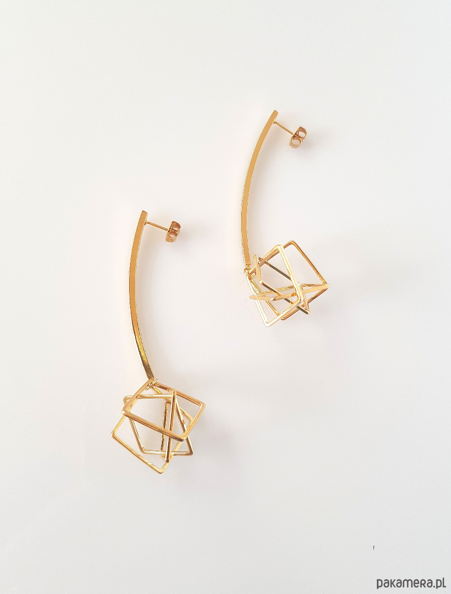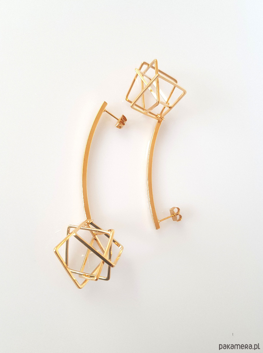 Geometryczne, nowoczesne kolczyki, długie i wyraziste.