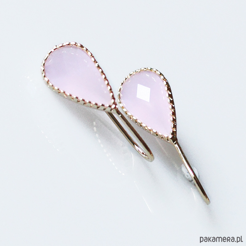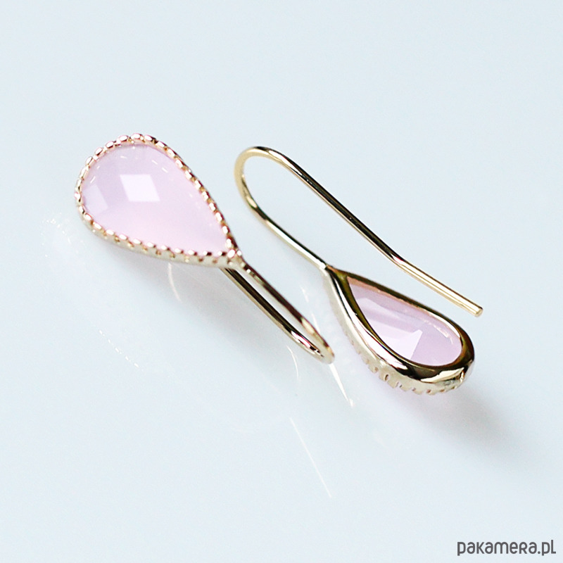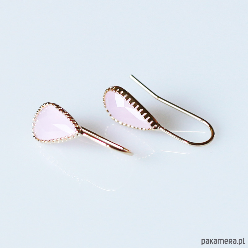 Delikatne kolczyki wykonane z mosiądzu platerowanego złotem i kryształów w kolorze różowym.