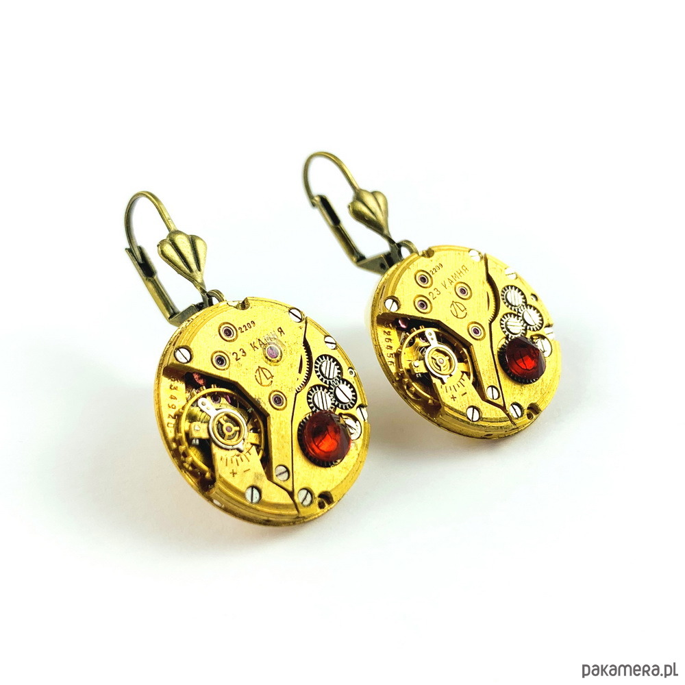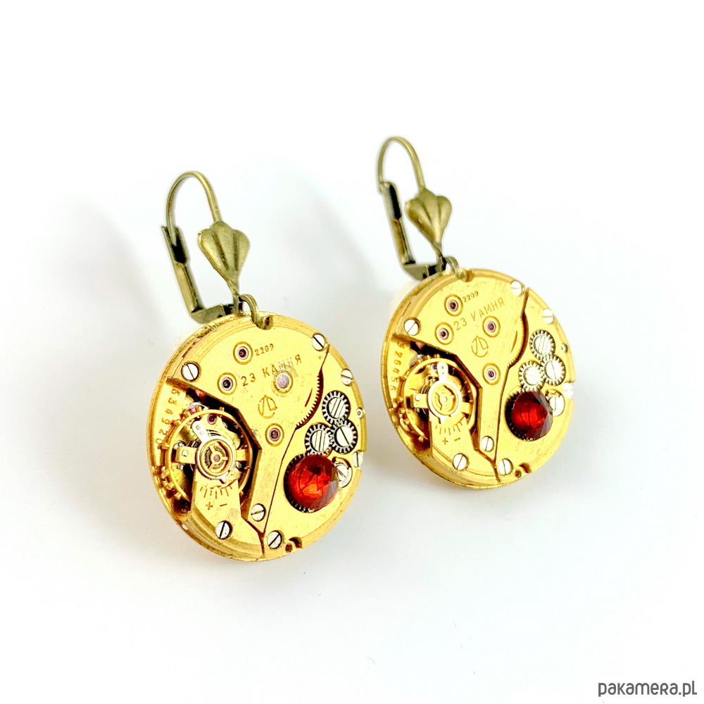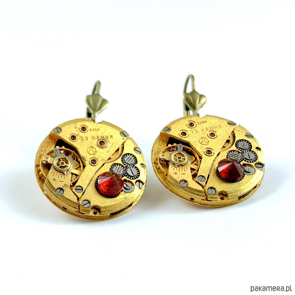 - Materiał wykonania: oryginalne rosyjskie, pozłacane mechanizmy zegarkowe ozdobione spinelami i cyrkoniami