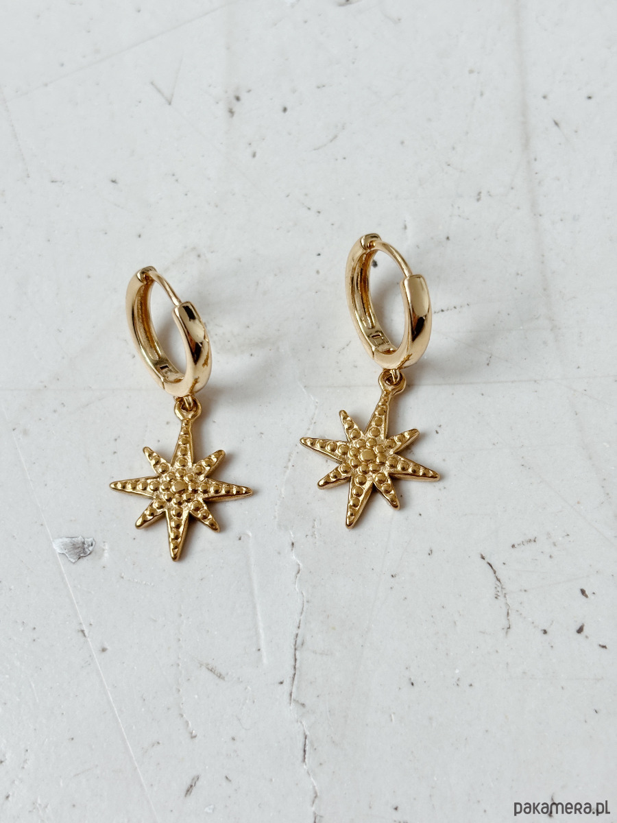 Kolczyki są wykonane z zapięć z mosiądzu pozłacanego 18k złotem, oraz zawieszki ze stali ch.