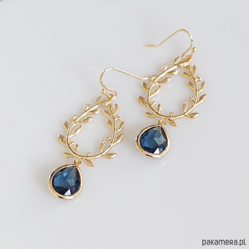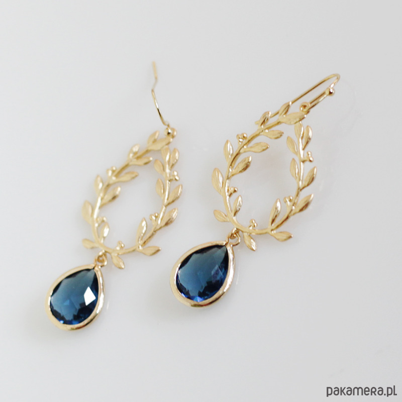 Subtelny fasetowany kryształ w odcieniu oxford blue i delikatna pozłacana gałązka.