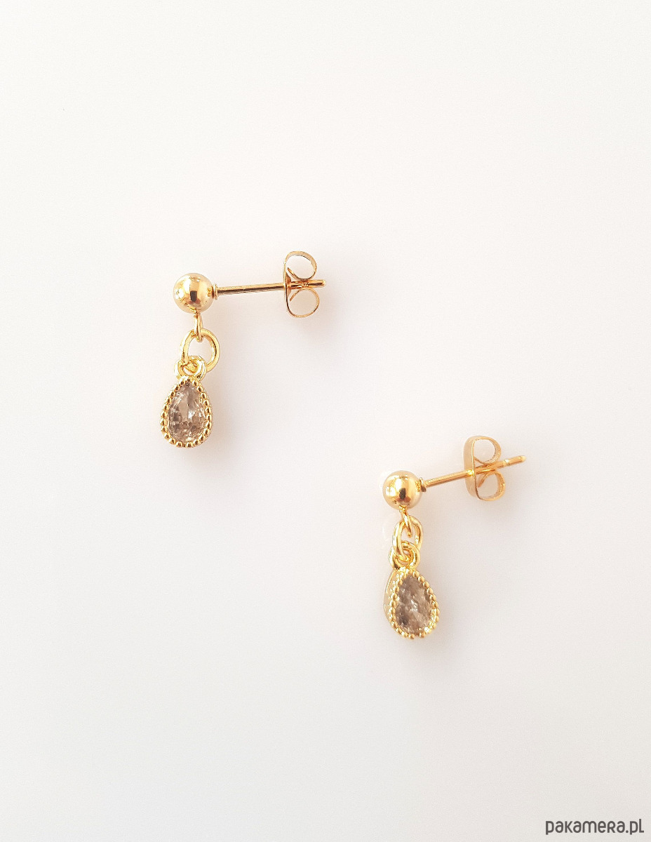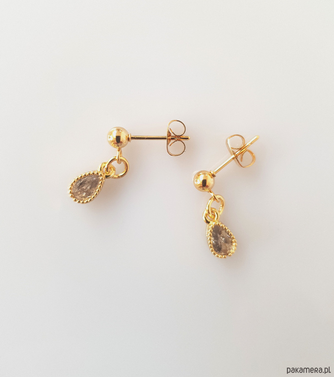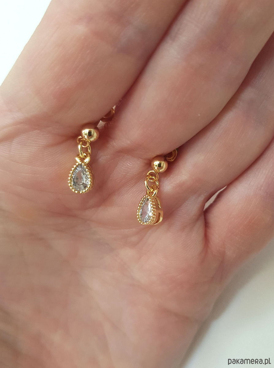 Zawieszki wykonane z mosiądzu platerowanego złotem i cyrkonii.
