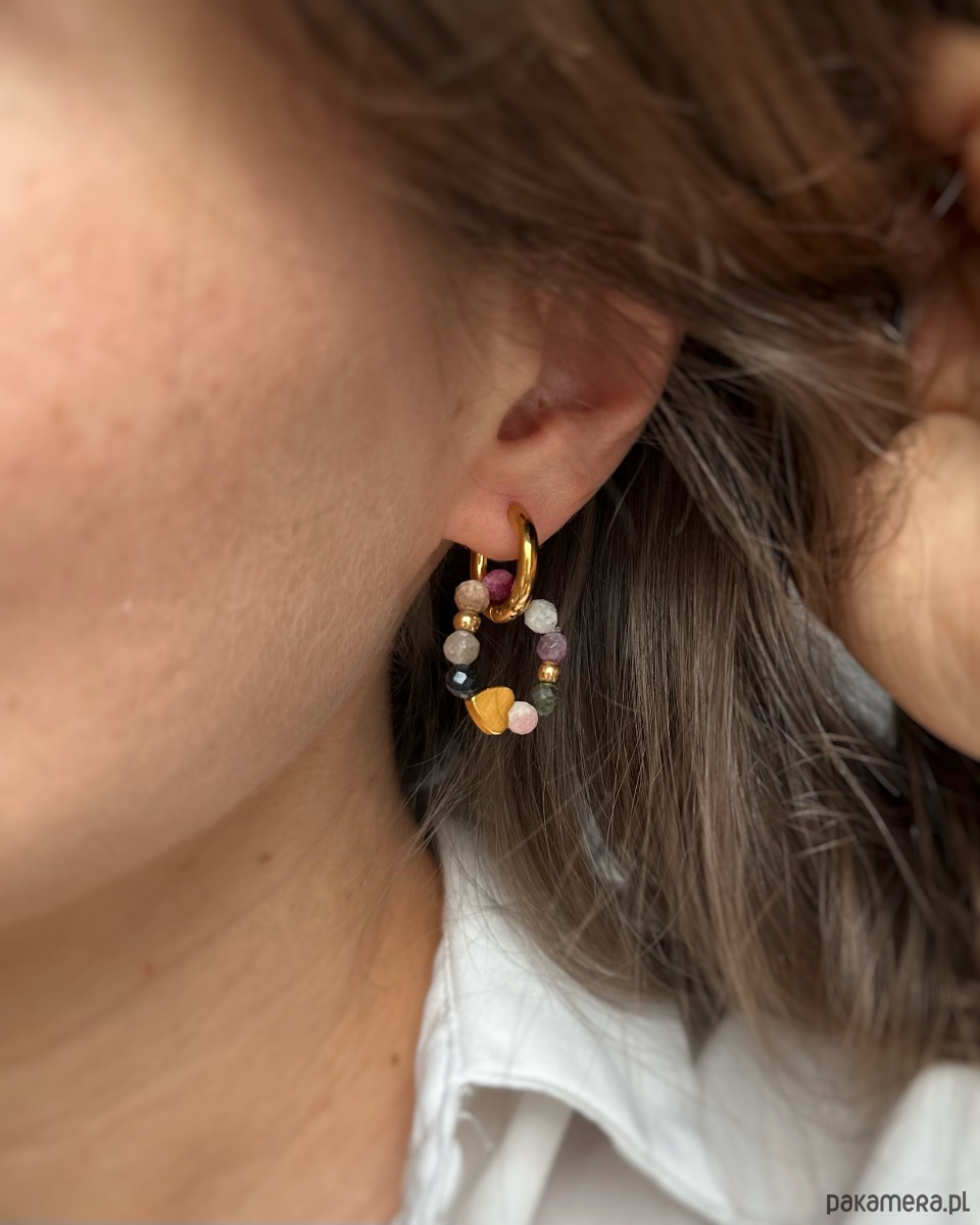 Wyjątkowe kolczyki z kolorowego turmalinu i złotego hematytu. Subtelne i kobiece - dla każdej romantyczki! Idealny pasują do codziennych stylizacji i na randkę🩷