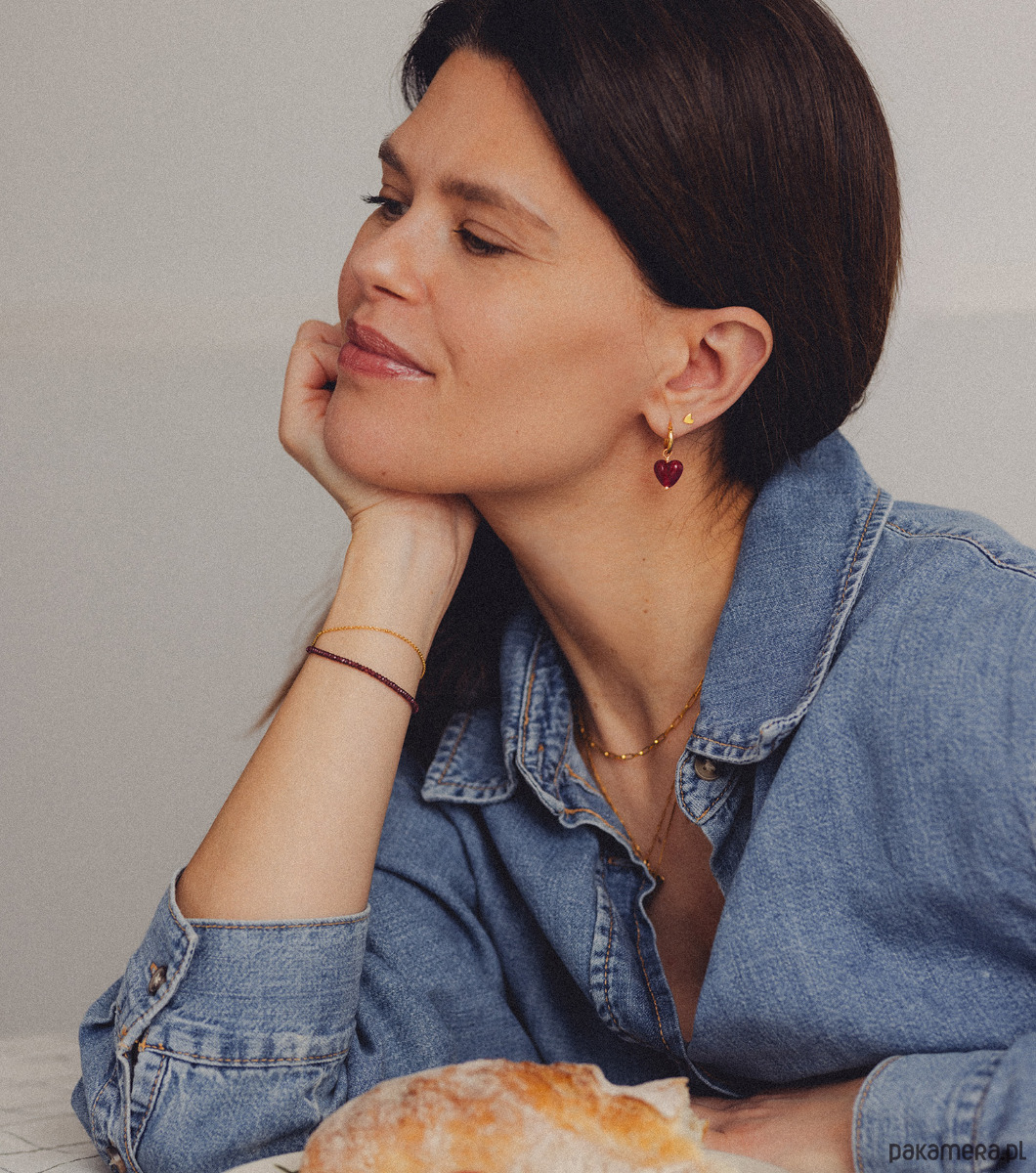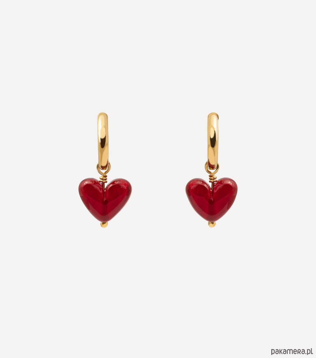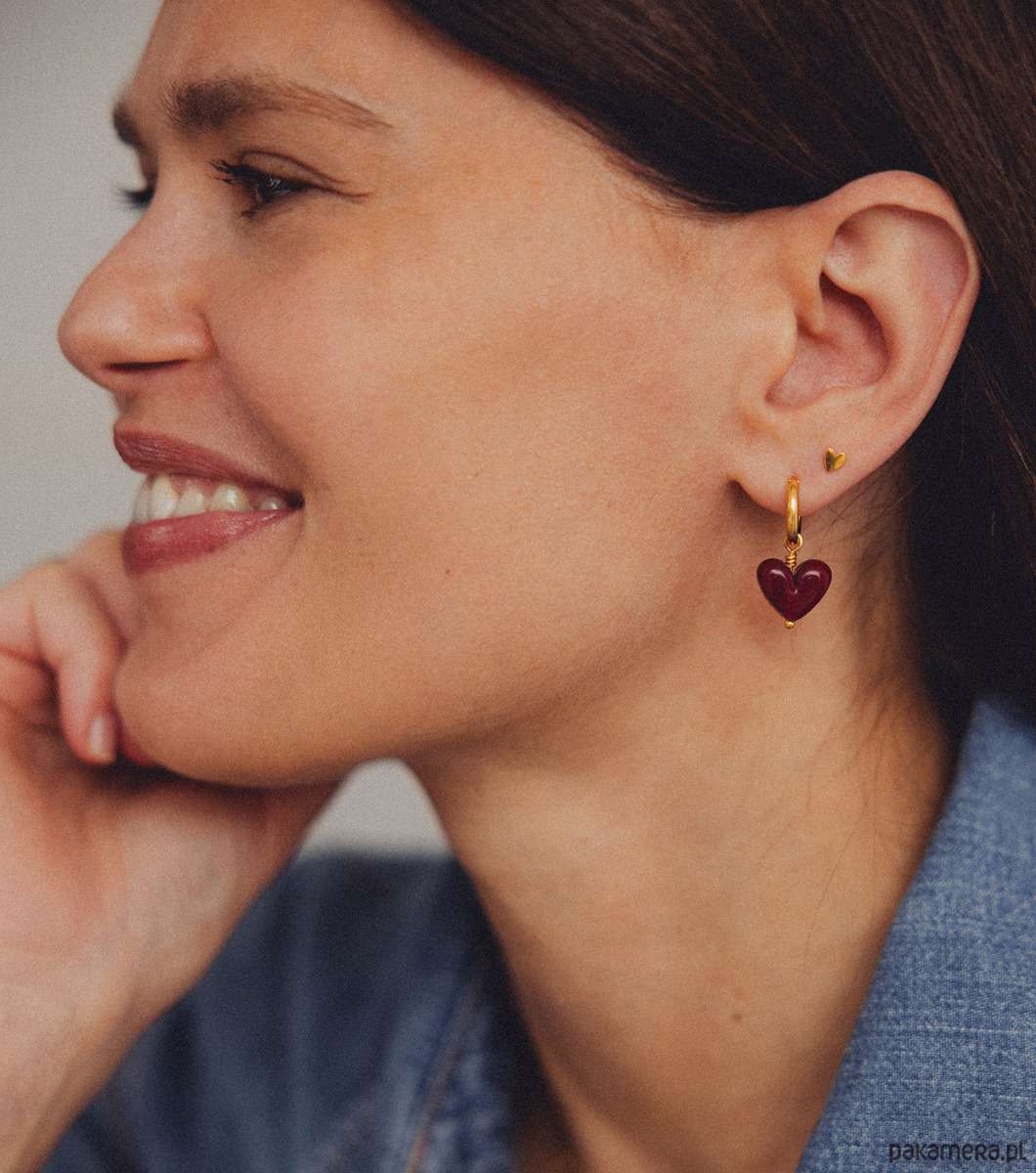 Ponadczasowe kolczyki koła o wyrazistym charakterze. Ich główną ozdobą jest wyjątkowa zawieszka w kształcie serca wykonana ręcznie w technice lampwork. Serca powstają w pracowni szkła, gdzie każdy detal formowany jest płomieniem i dłonią rzemieślnika. Wszechstronne i pełne możliwości – serca można zdjąć, nosić same koła lub wzbogacić je o dodatkowe symbole i kamienie szlachetne, tworząc unikalne kompozycje.