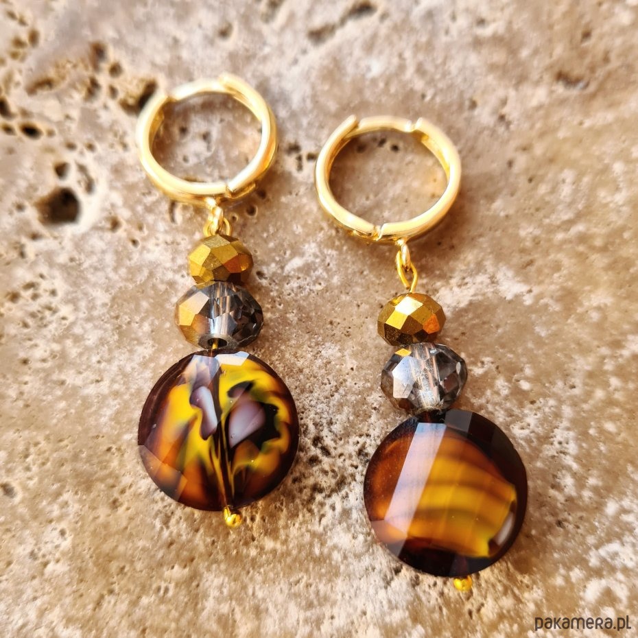 Kolczyki wykonane ręcznie, ze srebra pokrytego 24 karatowym złotem.