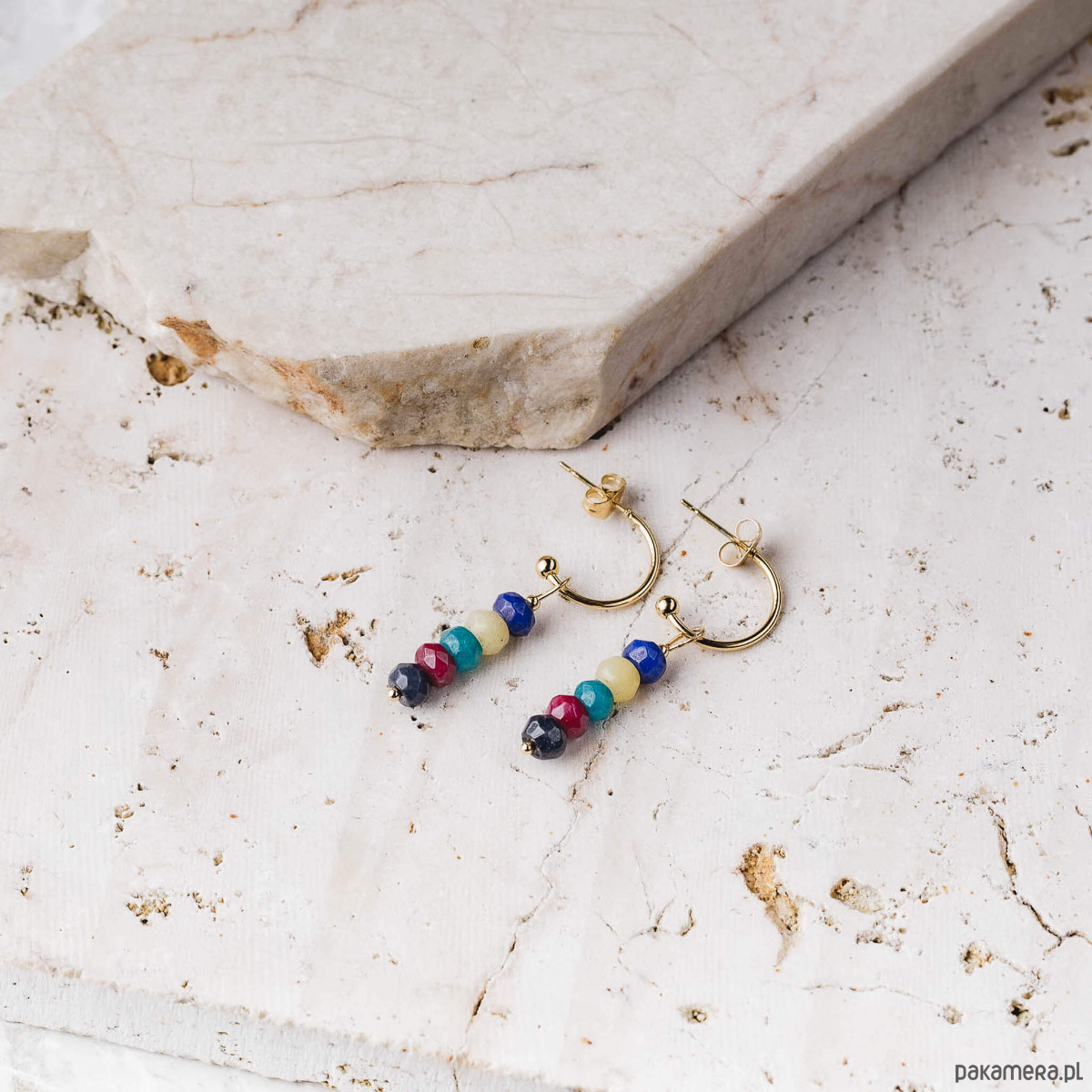 Kolczyki z pozłacanej stali szlachetnej z zawieszką z kolorowych jadeitów.